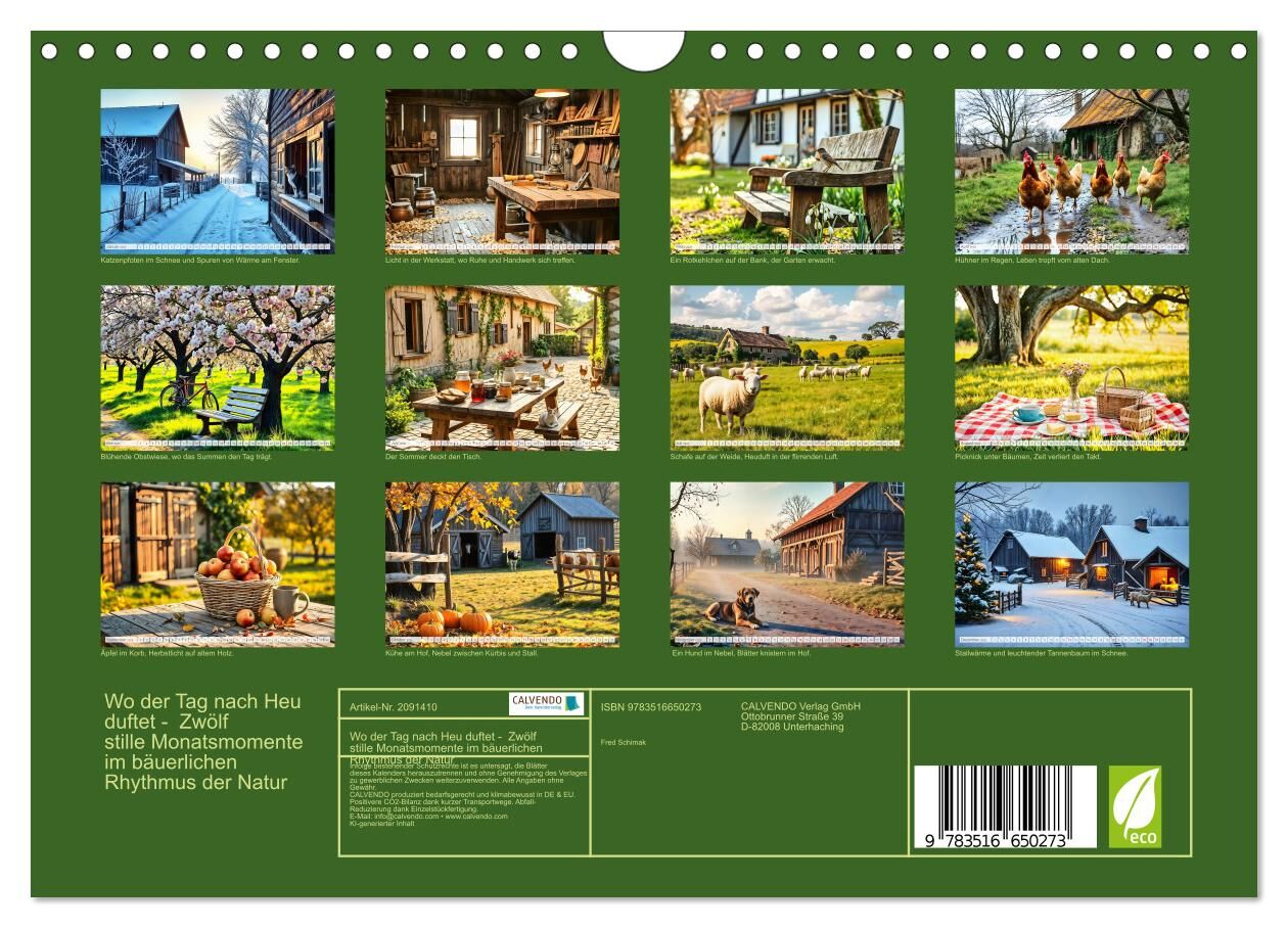 Ein Kalender voller Ruhe, Handwerk und Natur. Die zwölf KI generierten Motive zeigen das idyllische Landleben in seiner ganzen Vielfalt. Mit Werkstätten, Obstwiesen, Picknicks und verschneiten Höfen. In fotorealistischer Ästhetik und mit viel Liebe zum Detail ...