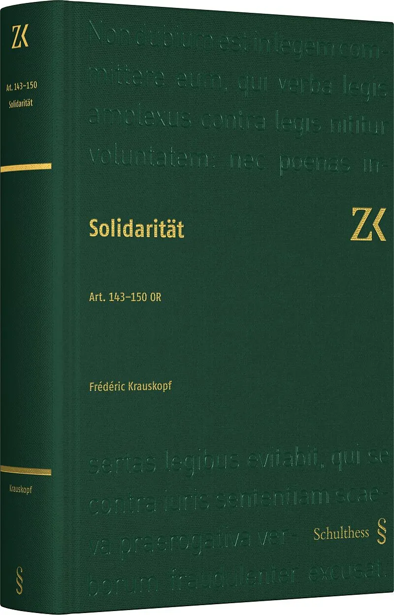 Die Solidarität gehört zu den wichtigsten Einrichtungen des privaten Schuldrechts. Ihr sind ein ganzer Abschnitt des Obligationenrechts (Art. 143-150) und zahlreiche weitere Gesetzesbestimmungen gewidmet. Trotz ihrer erheblichen Bedeutung für die Praxis gibt d...