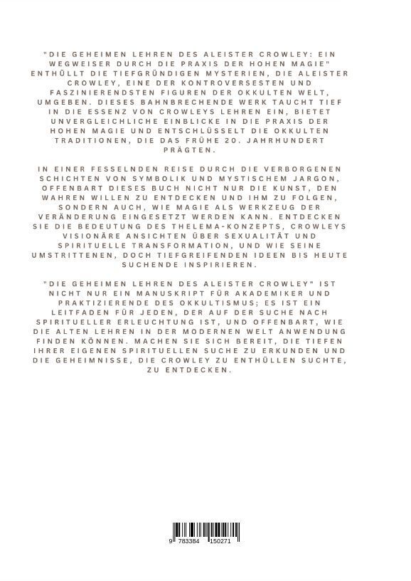 Entschleiern Sie die Mysterien hochmagischer Rituale und philosophischer Tiefen mit 'Die geheimen Lehren des Aleister Crowley: Ein Wegweiser durch die Praxis der hohen Magie'. Tauchen Sie ein in das faszinierende Universum eines der schillerndsten Meister des ...