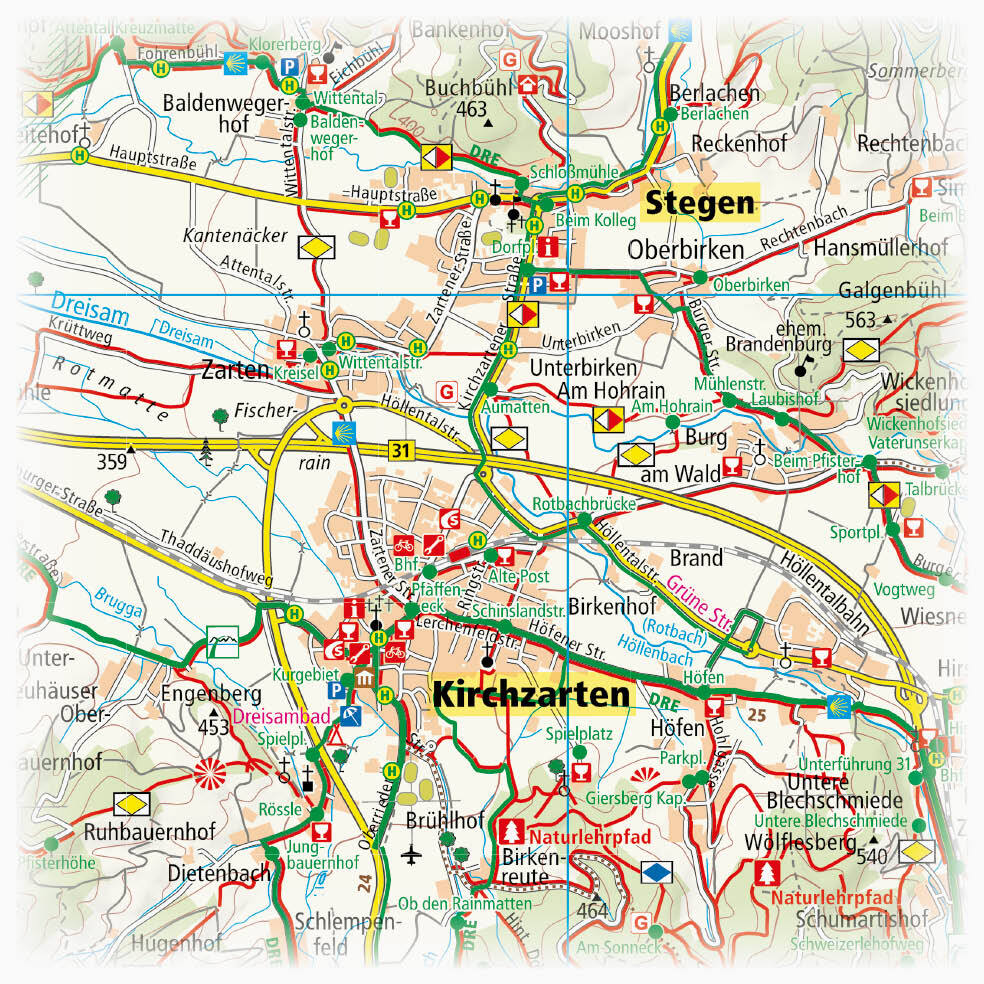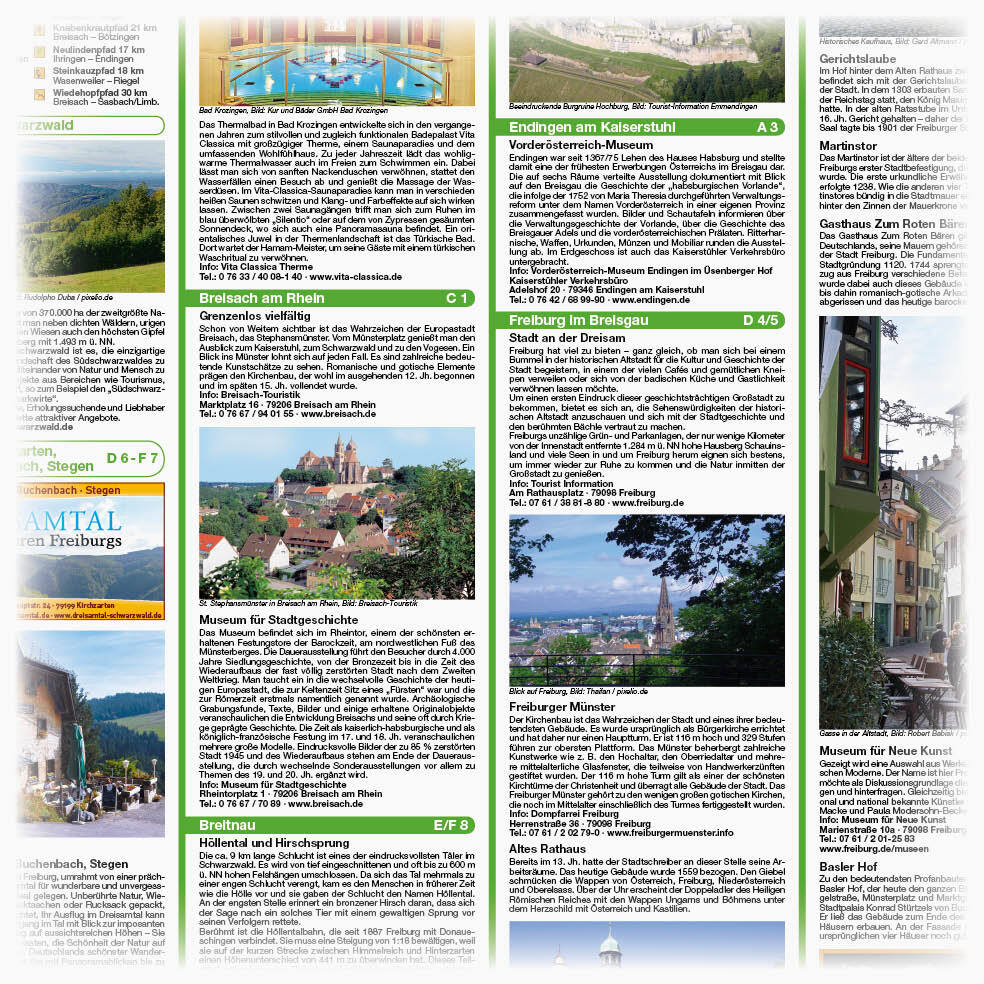 Die Anzahl der markierten Rad- und Wanderwege dokumentiert die Attraktivität der Region für Aktivurlauber: Westlich von Freiburg sind Wege ins Elsass, Touren entlang des Oberrheins und Strecken durch das Kaiserstuhlgebirge markiert. Im Osten lädt der Naturpark...