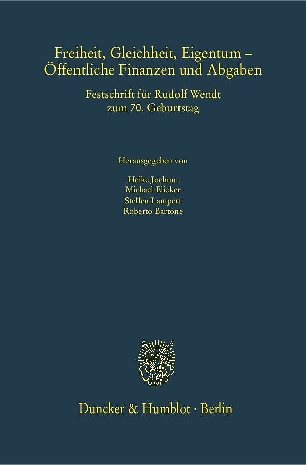 »Guaranty of Freedom, Equality, and Property Rights Public Budgets and Dues« Marking the 70th birthday of Rudolf Wendt many colleagues and friends contributed substantial articles linked to topics he has previously worked on during his impressive academic life. The guaranties of Freedom and Equality as well as the protection of Property rights by constitutional law have been matters close to his heart as well as structure and concept of public budgets and dues within the Federal Republic of Germany.