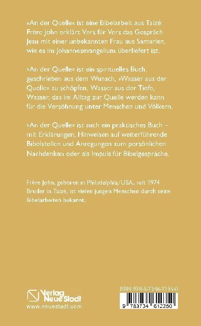 "An der Quelle" ist ein biblisches Buch. Frère John erklärt Vers für Vers das Gespräch Jesu mit einer unbekannten Frau aus Samarien, wie es im vierten Kapitel des Johannesevangeliums überliefert ist. Fachtheologen erkennen den fundierten exegetischen Hintergru...