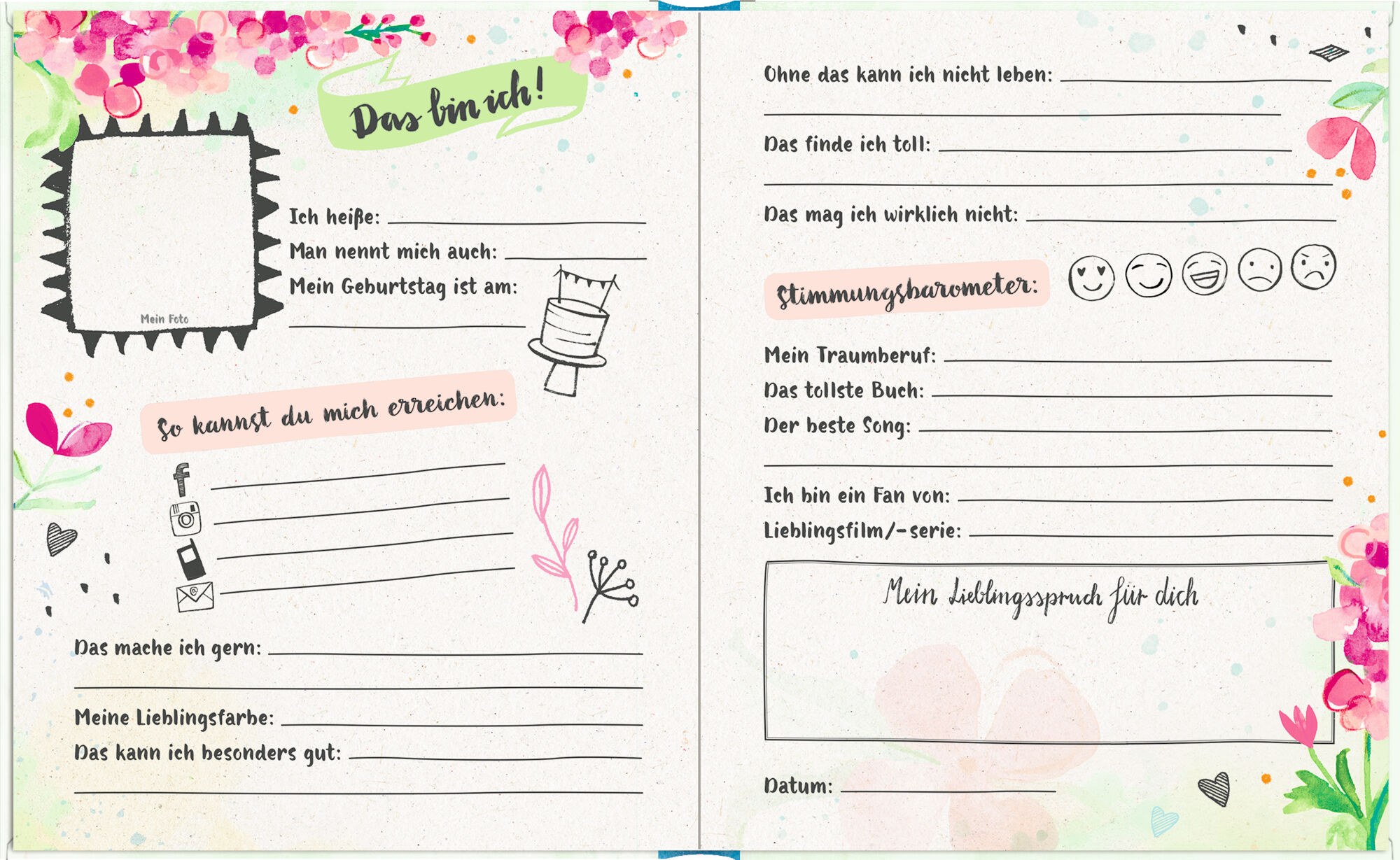 In dieses tolle Buch im blumigen Handlettering-Design können alle Freundinnen und Freunde hineinschreiben. Die 96 hübsch gestalteten Seiten bieten viel Platz zum Eintragen, Notieren und Skizzieren. Für alle wichtigen Geburtstage gibt es einen Geburtstagskalen...