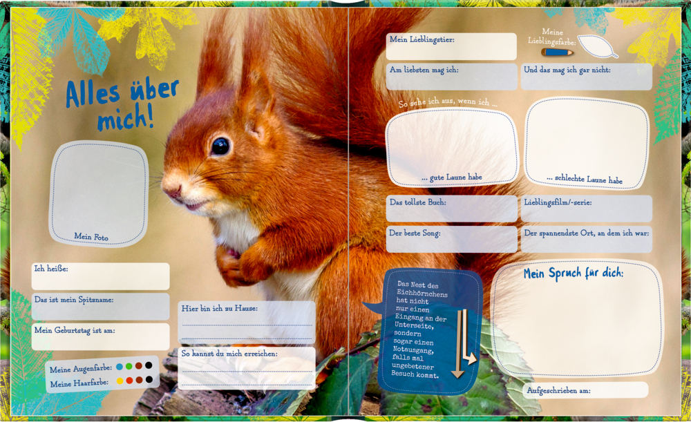 Dieses Freundebuch führt in die Tiefen unserer Wälder. Auf 96 Seiten lassen sich spannende Fotos von Wolf, Bär, Fuchs, Reh und Eichhörnchen finden und es gibt viel Platz zum Eintragen. Zusätzlich hält jede Seite interessante Infos zu den verschiedenen Tieren b...