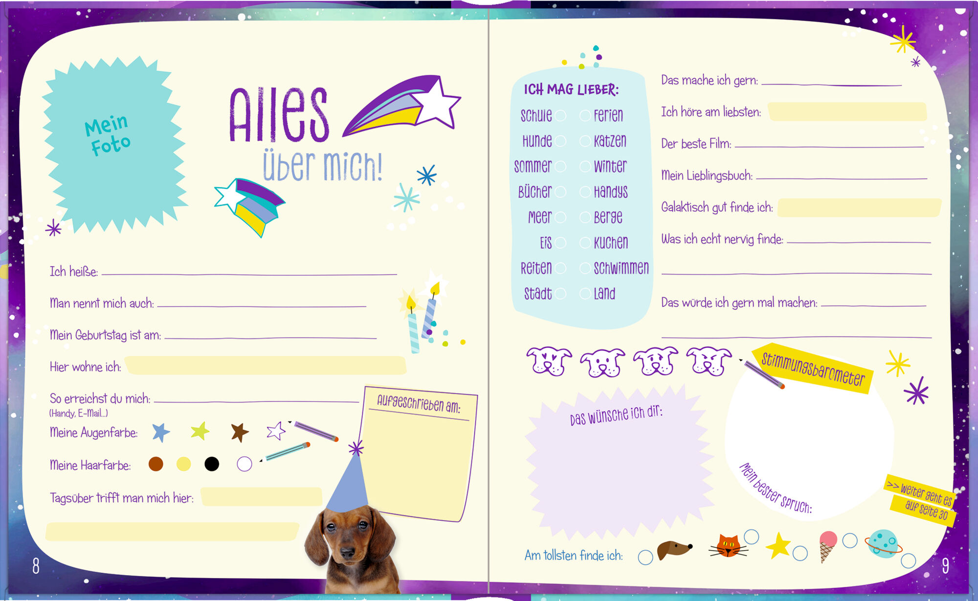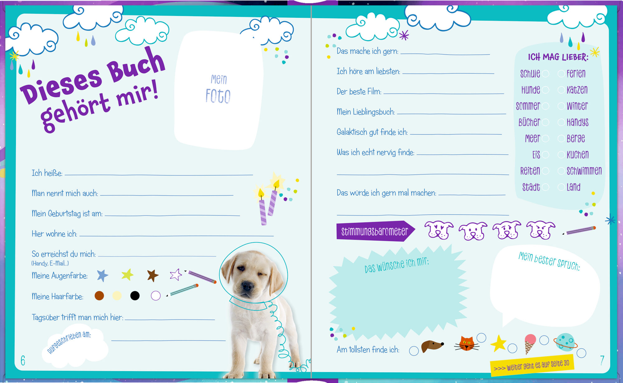 Dieses fantasievoll gestaltete Freundebuch bietet auf 96 Seiten genug Platz zum Eintragen für alle Freundinnen und Freunde. Das schimmernde Cover und die süßen Hundemotive im Innenteil machen dieses Freundebuch zum besonderen Eintrag-Spaß. Als Extra gibt es ei...