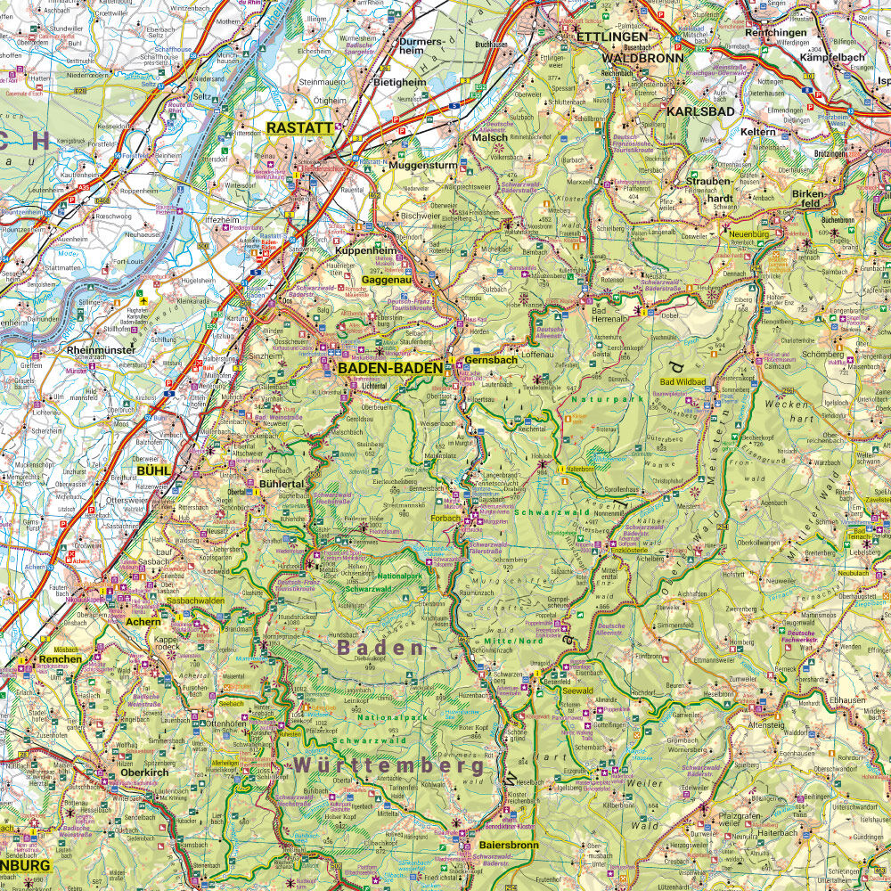 Freizeitkarte Nördlicher Schwarzwald Informationen zur Ausflugskarte Nördlicher Schwarzwald Maßstab 1:150 000 Auto- und Straßenkarte Sehenswürdigkeiten, Naturparks Landschaftlich schöne Strecken Touristische Informationen Wasserfest und reißfest 89 x 61 cm Seh...