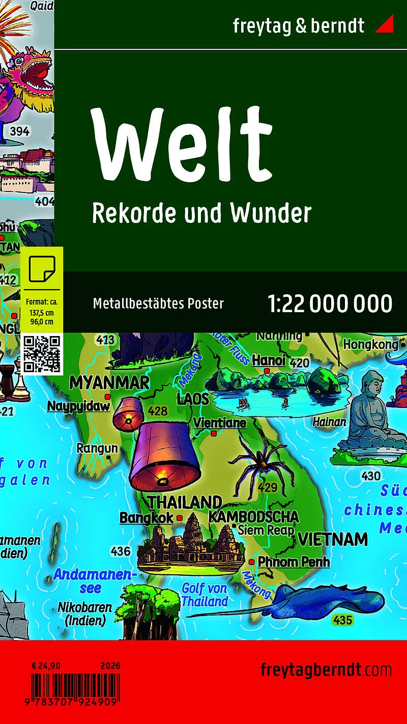 Weltkarte für Kinder Informationen zur Weltkarte für Kinder Maßstab 1:22.000.000 Kindgerechte Optik 500 illustrierte Rekorde, Besonderheiten &Fun Facts Flaggenrahmen (mit Flagge, Land und Hauptstadt) Ab 6 Jahren Deutsche Beschriftung Poster metallbestäbt, ...