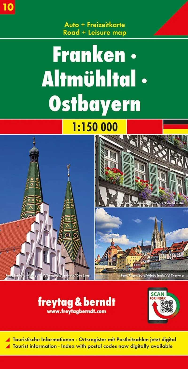 Straßenkarte Franken - Altmühltal - Ostbayern Informationen zur Straßenkarte Franken - Altmühltal - Ostbayern Maßstab 1:150.000 Touristische Informationen Campingplätze und Stellplätze Ortsregister mit Postleitzahlen ca. 125 x 95 cm, doppelseitig Klappentext S...