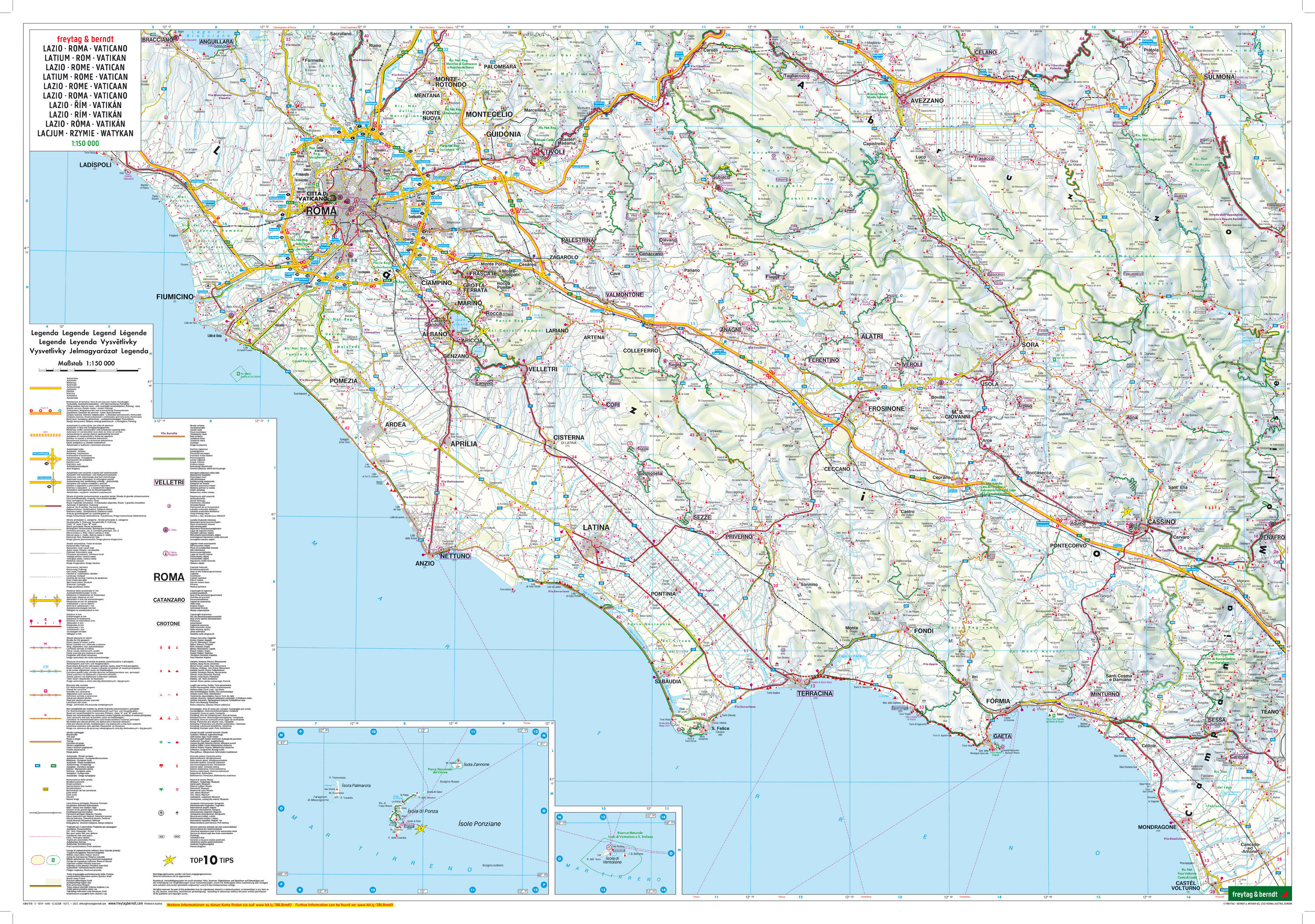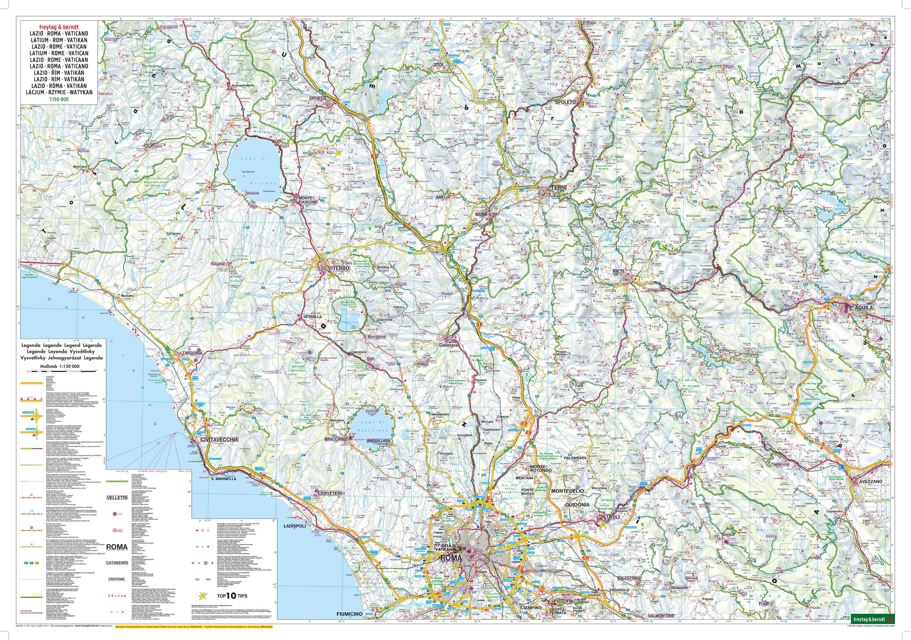 Neben der übersichtlichen Gestaltung bietet die Straßenkarte "Latium - Rom - Vatikan 1:150.000" zahlreiche Zusatzinformationen wie z.B. Straßenbeschaffenheit, Sehenswürdigkeiten, Campingplätze und einen Innenstadtpläne von Rom. Mit dem umfangreichen Ortsregist...