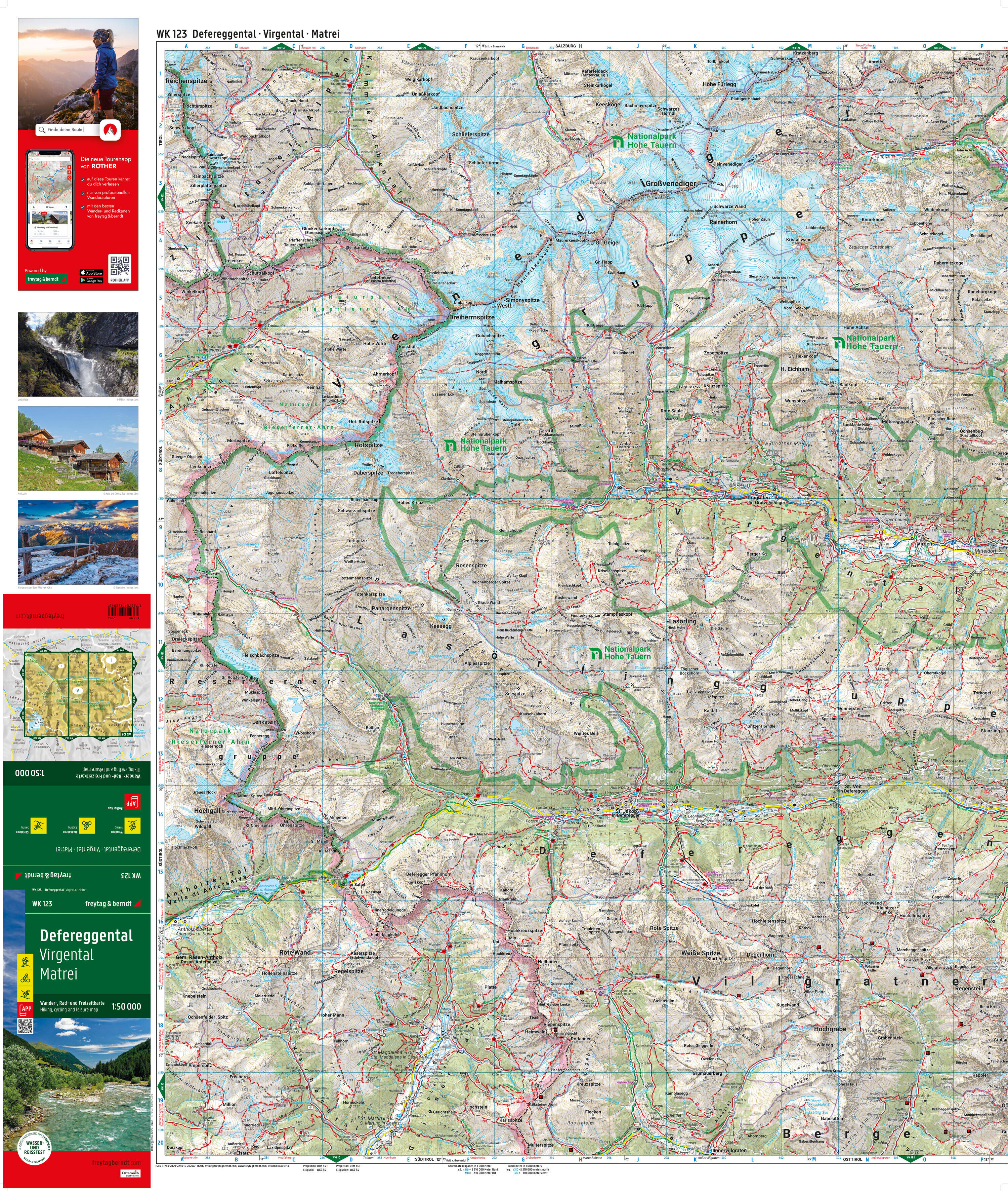Wander-, Rad- und Freizeitkarte Defereggental Informationen zur Wander- und Radkarte Defereggental Maßstab 1:50.000 Wander- und Weitwanderwege Radwege und Mountainbiketouren Schirouten und Langlaufloipen Touristische Informationen Rother App Wasserfest und rei...