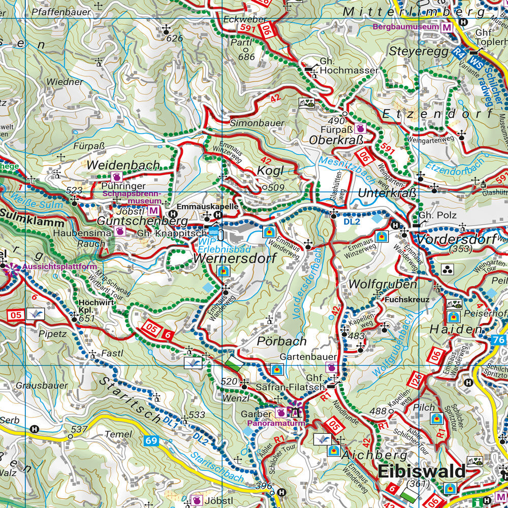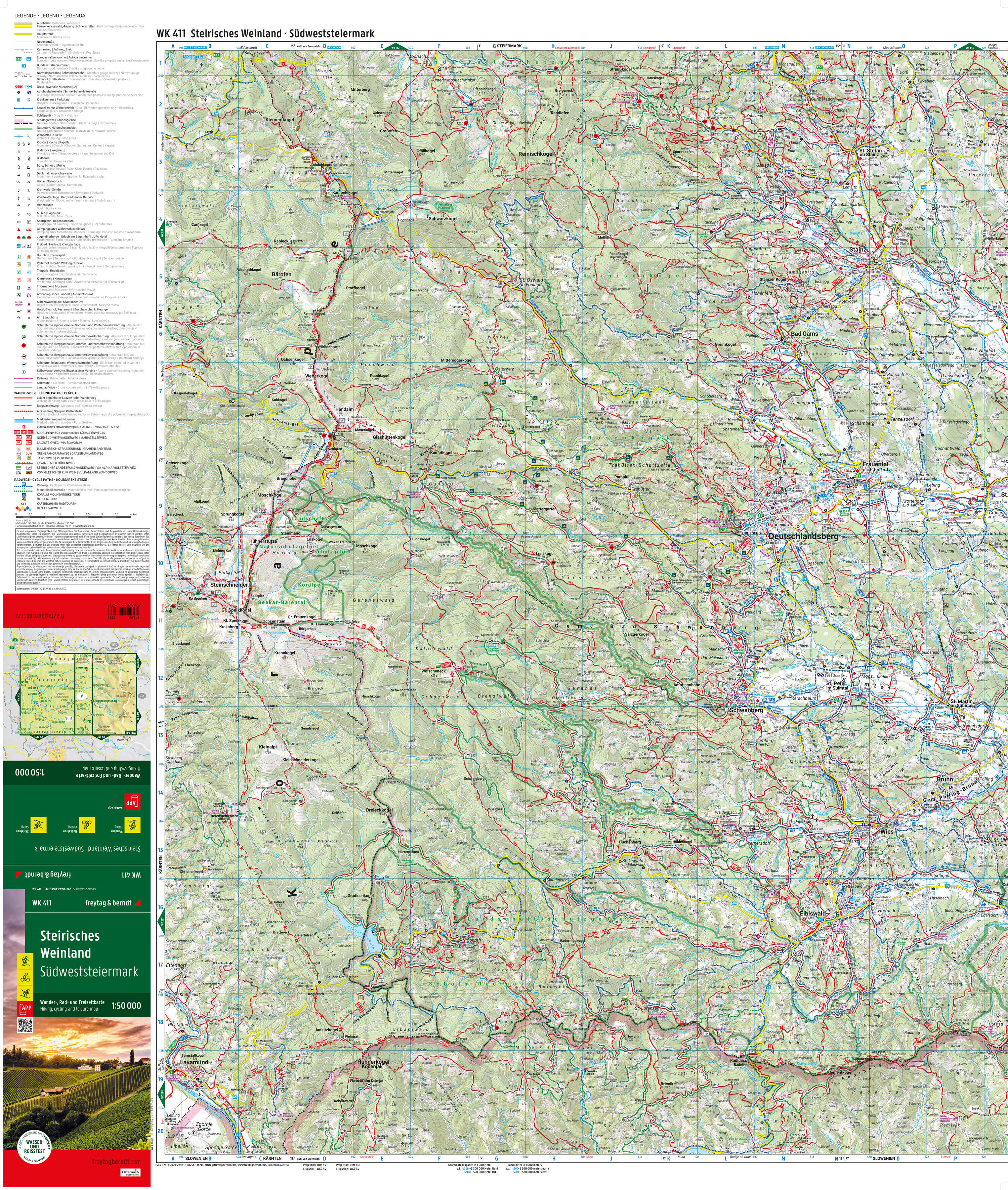 Wander-, Rad- und Freizeitkarte Steirisches Weinland Informationen zur Wander- und Radkarte Steirisches Weinland Maßstab 1:50.000 Wander- und Weitwanderwege Radwege und Mountainbiketouren Schirouten und Langlaufloipen Touristische Informationen Rother App Wass...