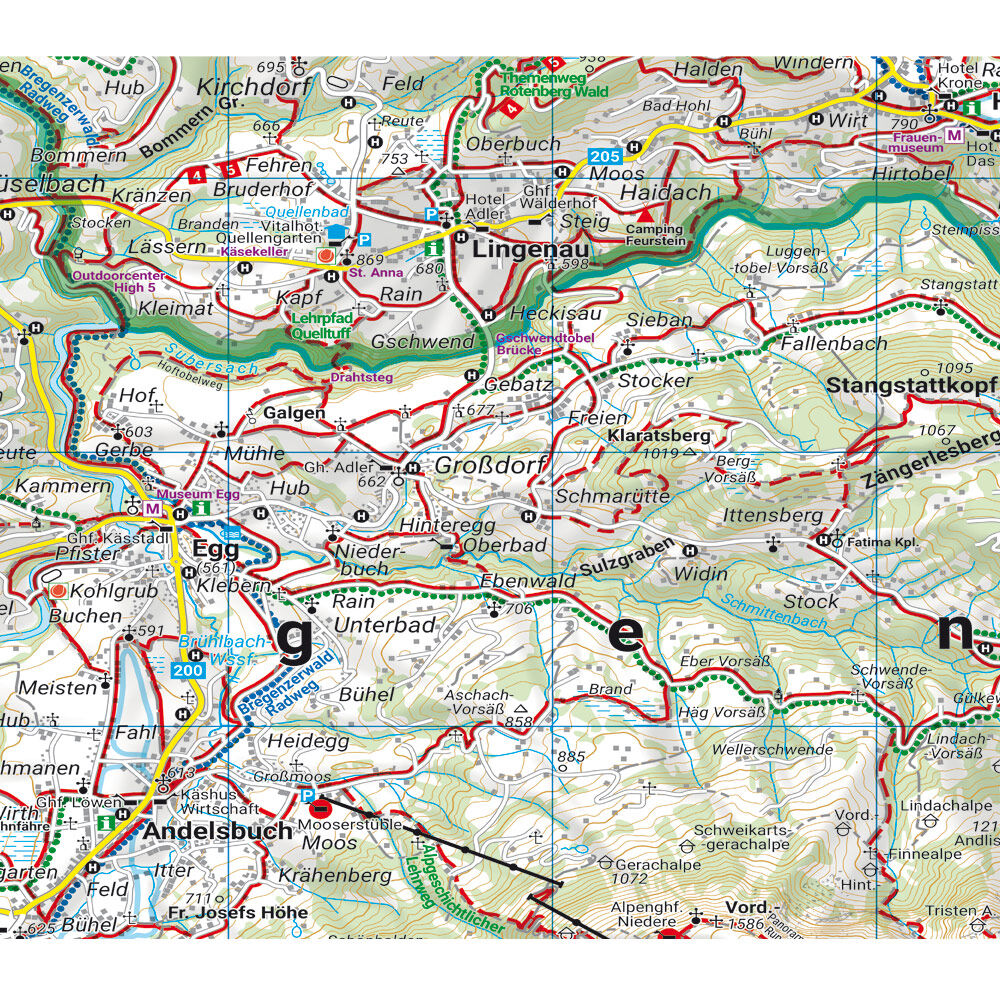 Wander-, Rad- und Freizeitkarte Kleinwalsertal Informationen zur Wander- und Radkarte Kleinwalsertal Maßstab 1:35.000 Wander- und Weitwanderwege Mountainbike- und Radwege Schiroute, Langlaufloipen Rother App Wasserfest und reißfest 82 x 69 cm, doppelseitig Rot...