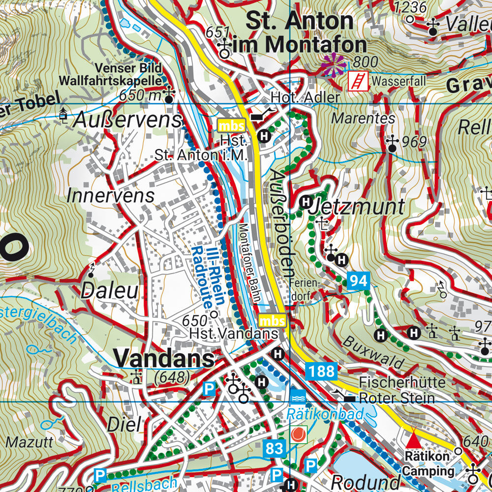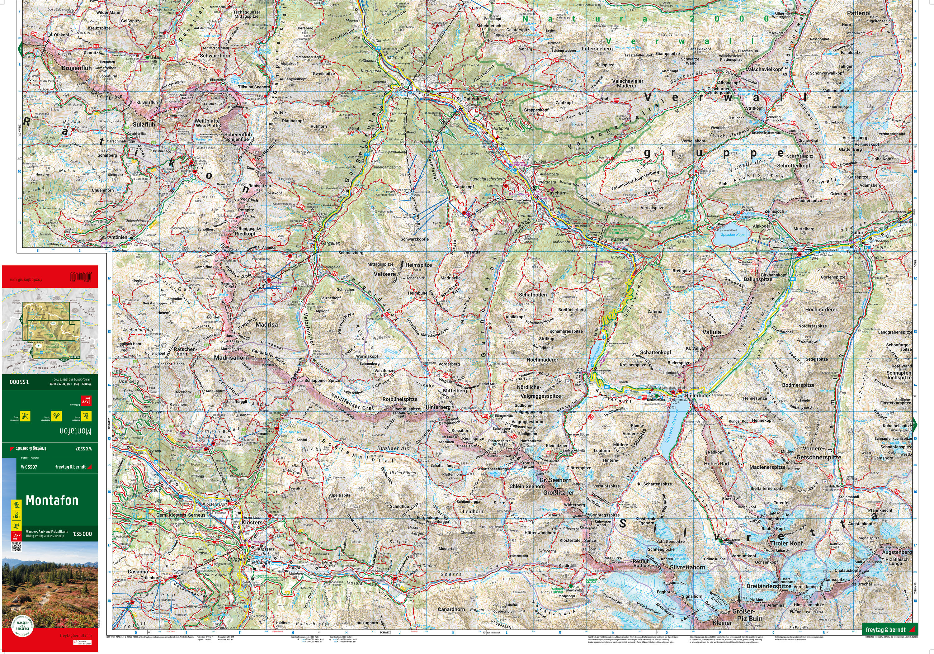 Wander-, Rad- und Freizeitkarte Montafon Informationen zur Wander- und Radkarte Montafon Maßstab 1:35.000 Wander- und Weitwanderwege Radwege und Mountainbiketouren Schirouten und Langlaufloipen Rother App Wasserfest und reißfest ca. 97,5 x 69 cm, doppelseitig ...