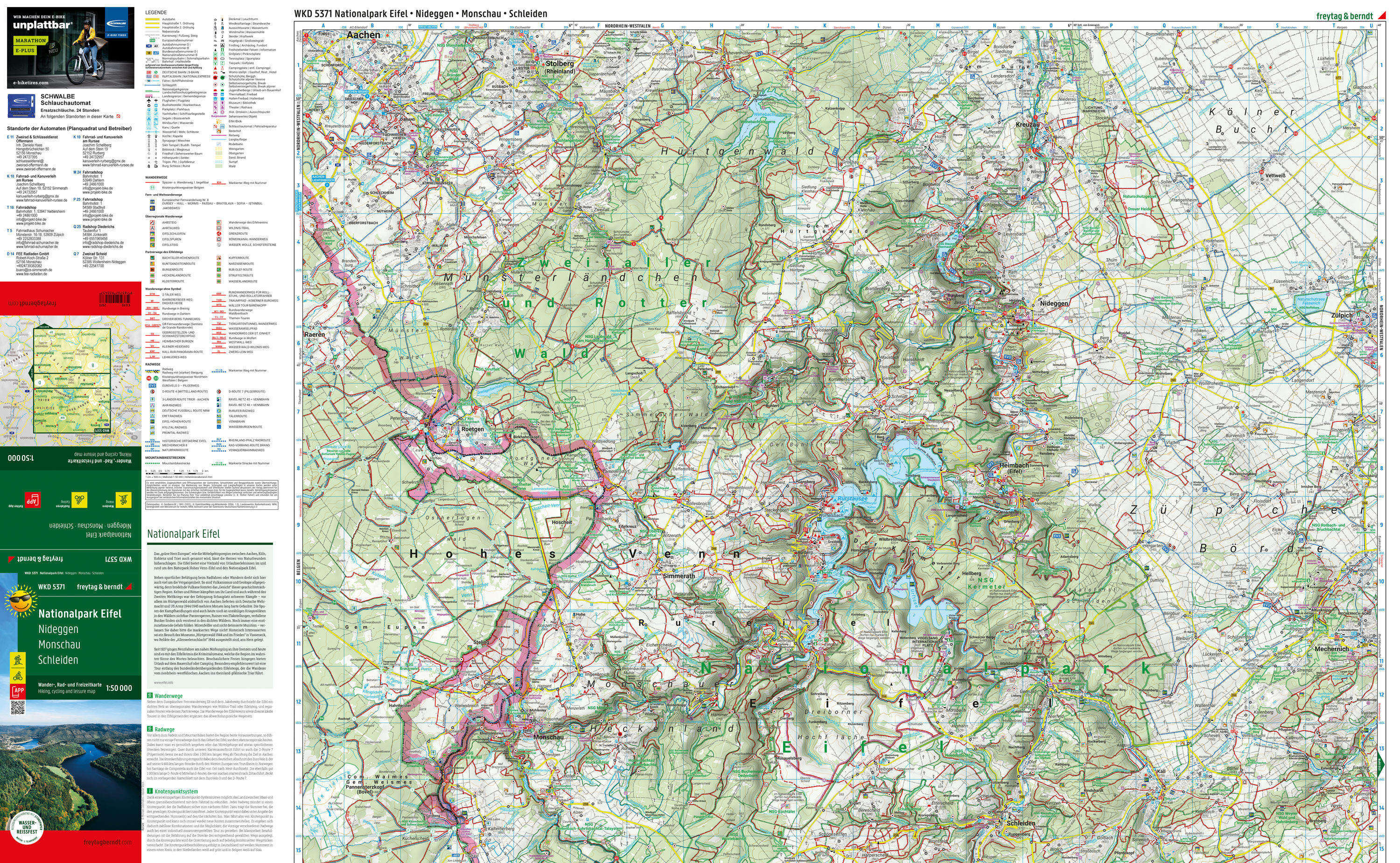Wander-, Rad- und Freizeitkarte Nationalpark Eifel Wander- und Radkarte Informationen zur Wander- und Radkarte Naturpark Eifel Maßstab 1:50 000 Wander- und Weitwanderwege Radwege und Mountainbiketouren Touristische Informationen Rother App Wasserfest und reißf...
