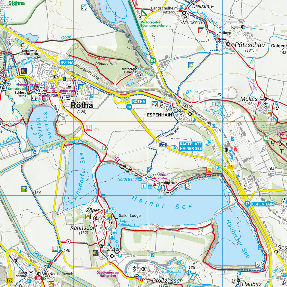südlichen Leipziger Neuseenland Wanderkarte Leipziger Neuseenland Wander- und Radkarte Informationen zur Wander- und Radkarte Leipziger Neuseenland - Südlicher Teil Maßstab 1:50 000 Wanderwege Radwege Touristische Informationen GPX-Tracks zum Download Wasserfe...