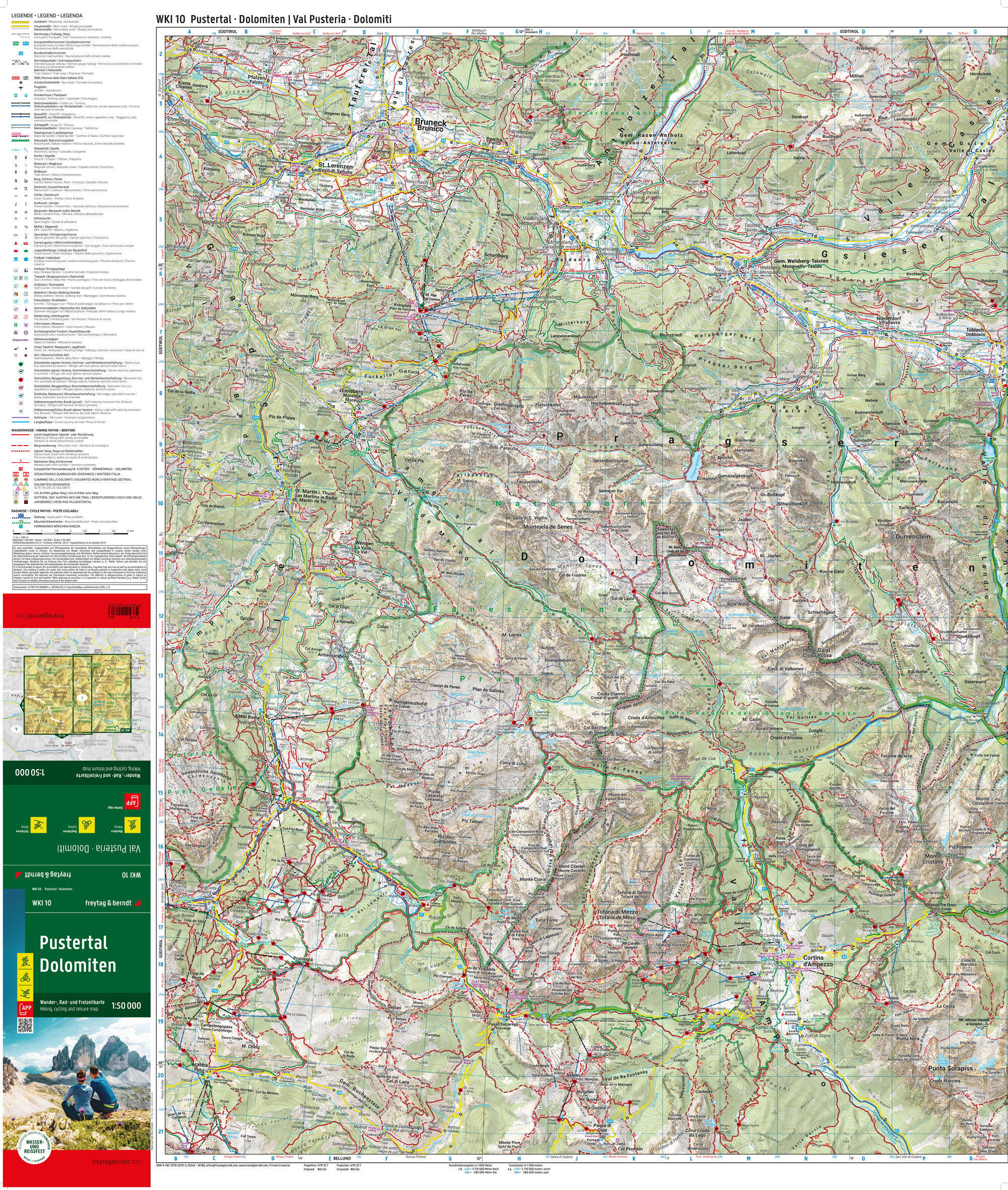 Wander-, Rad- und Freizeitkarte Pustertal - Dolomiten Informationen zur Wander- und Radkarte Pustertal - Dolomiten Maßstab 1:50.000 Wander- und Weitwanderwege Radwege und Mountainbiketouren Schirouten und Langlaufloipen Touristische Informationen Rother App Wa...