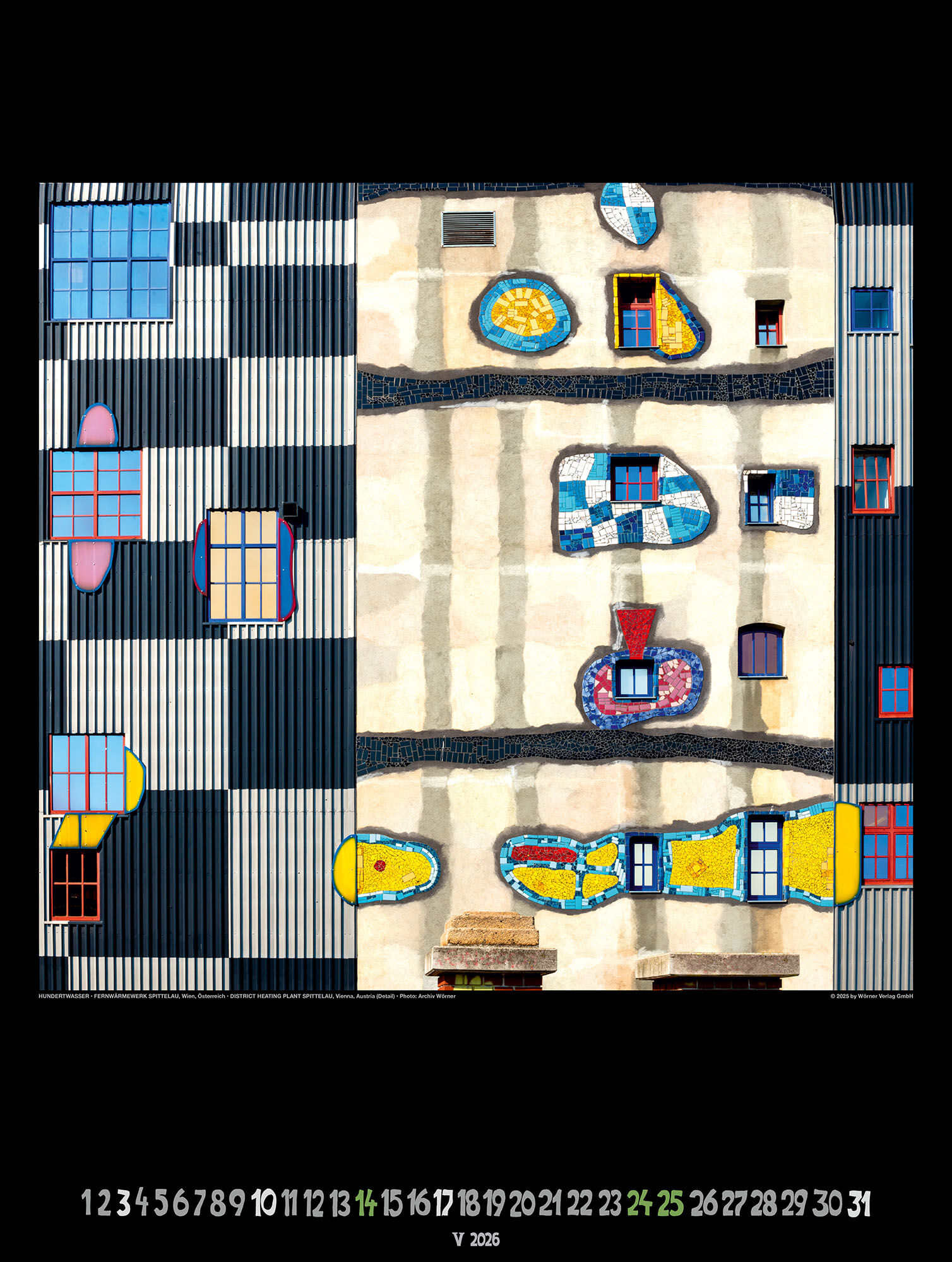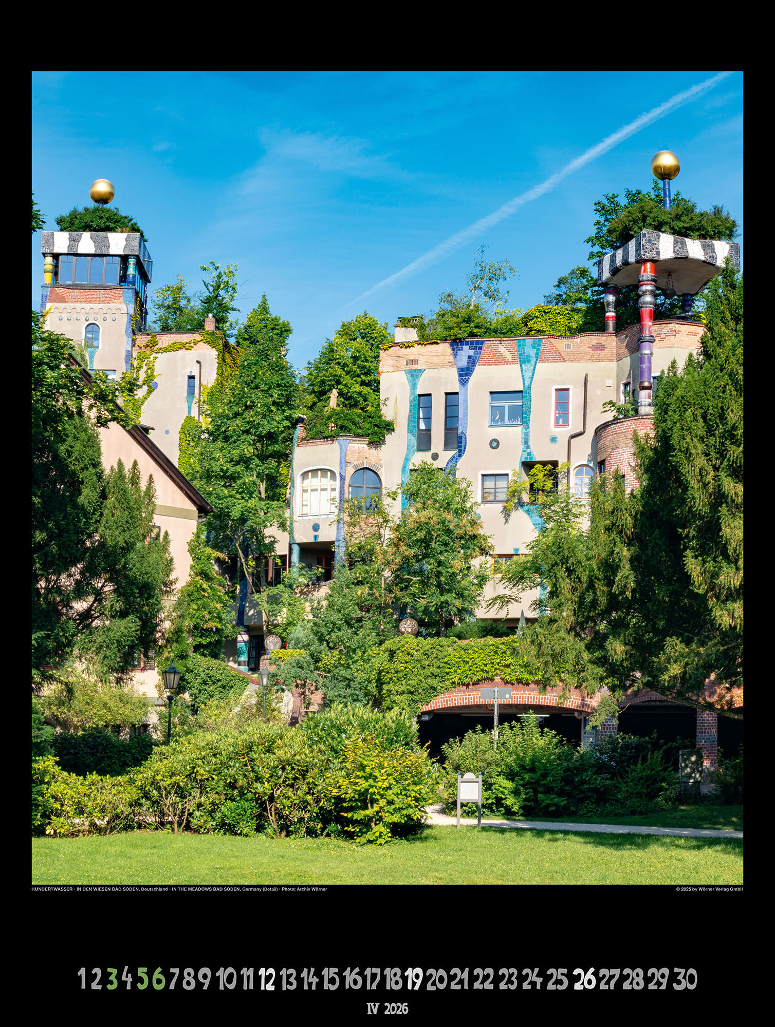 14 Blatt, Spiralbindung Format: 65 x 49 cm Titelblatt mit Glanzfolienprägung Klimaneutraler Druck auf FSC-Papier Made in Germany Der Große Hundertwasser Architektur Kalender 2026 ist offiziell mit der Hundertwasser Gemeinnützigen Privatstiftung abgestimmt. Sei...