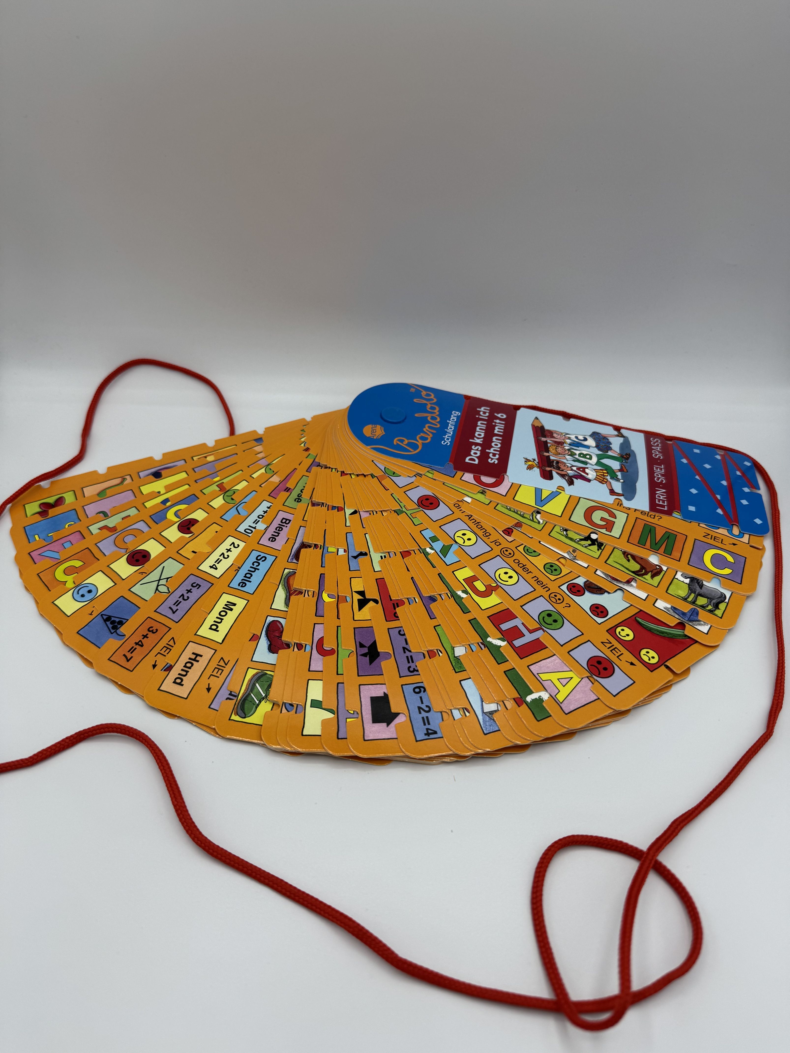 Motiviert lernen mit Lösungskontrolle ! In dem stabilen Lernspielfächer Bandolo erwarten Kinder zum Schulanfang viele abwechslungsreiche Aufgaben . Einfach die richtigen Bildpaare mit der Schnur verbinden und auf der Kartenrückseite die Lösung kontrollieren ....
