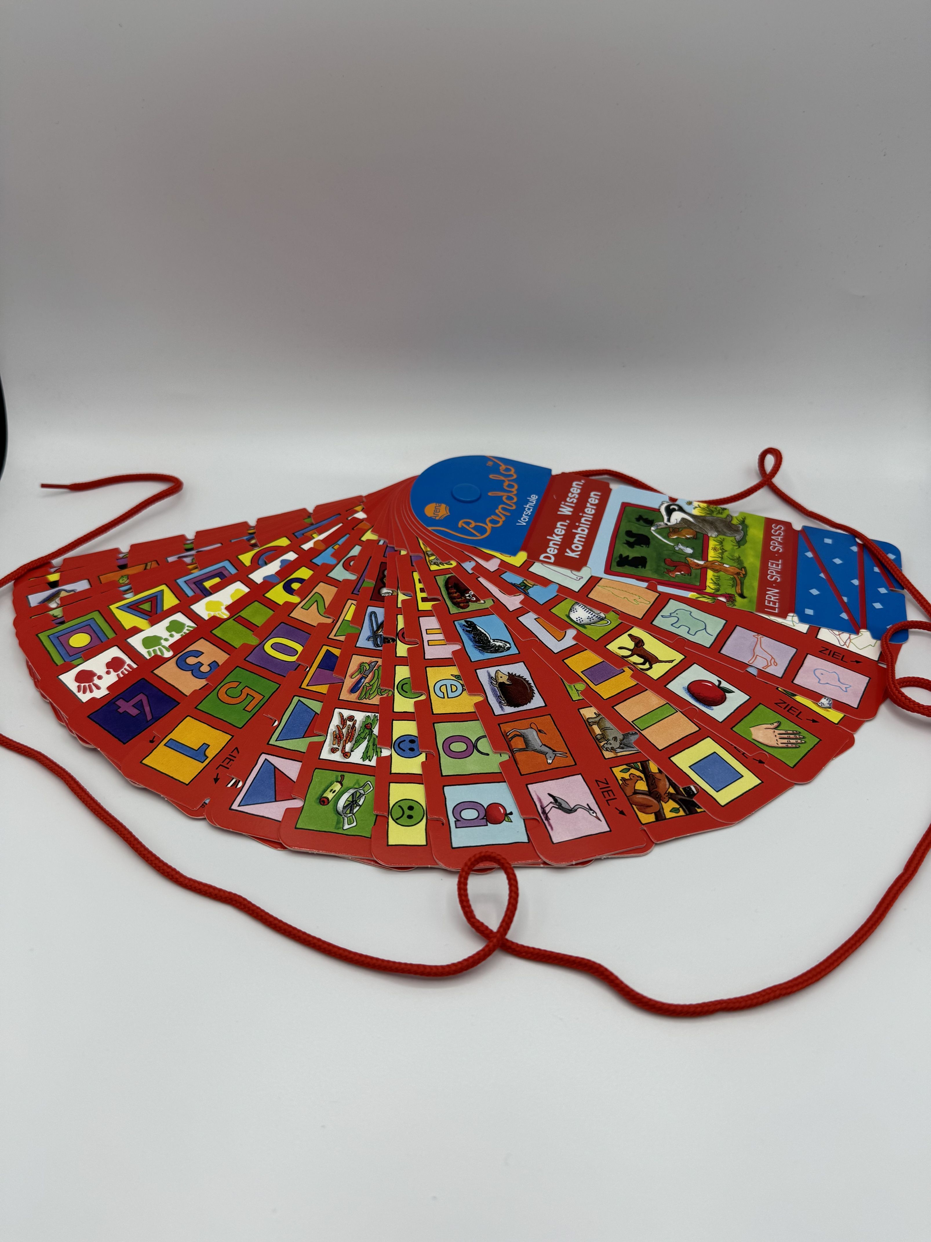 Motiviert lernen mit Lösungskontrolle ! In dem stabilen Lernspielfächer Bandolo erwarten Kinder zum Schulanfang viele abwechslungsreiche Aufgaben . Einfach die richtigen Bildpaare mit der Schnur verbinden und auf der Kartenrückseite die Lösung kontrollieren ....