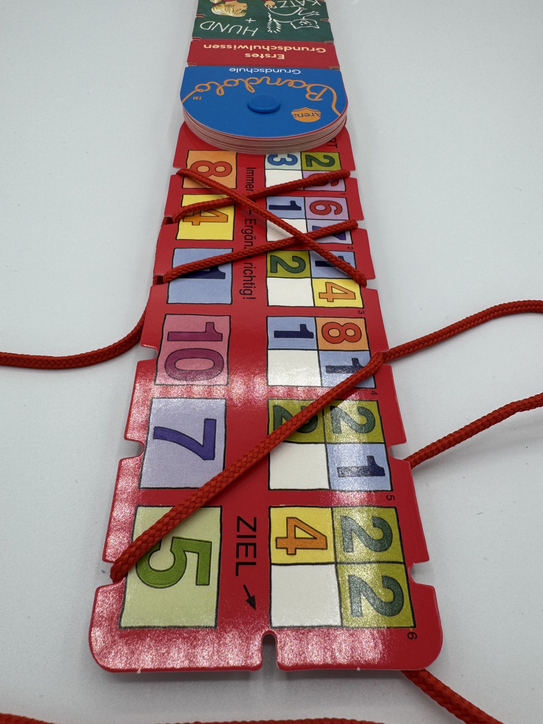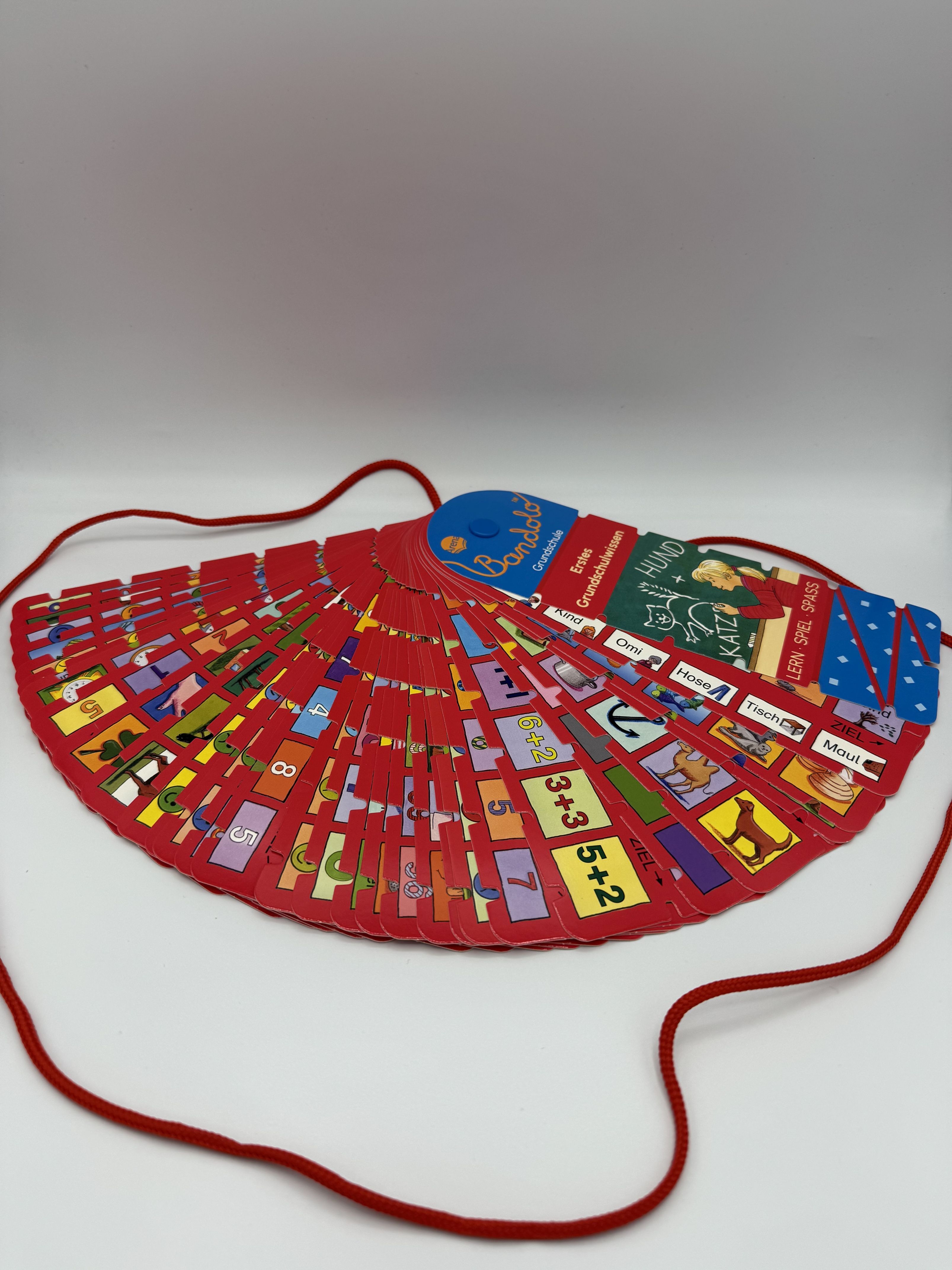 Motiviert lernen mit Lösungskontrolle ! In dem stabilen Lernspielfächer Bandolo erwarten Kinder zum Schulanfang viele abwechslungsreiche Aufgaben . Einfach die richtigen Bildpaare mit der Schnur verbinden und auf der Kartenrückseite die Lösung kontrollieren ....