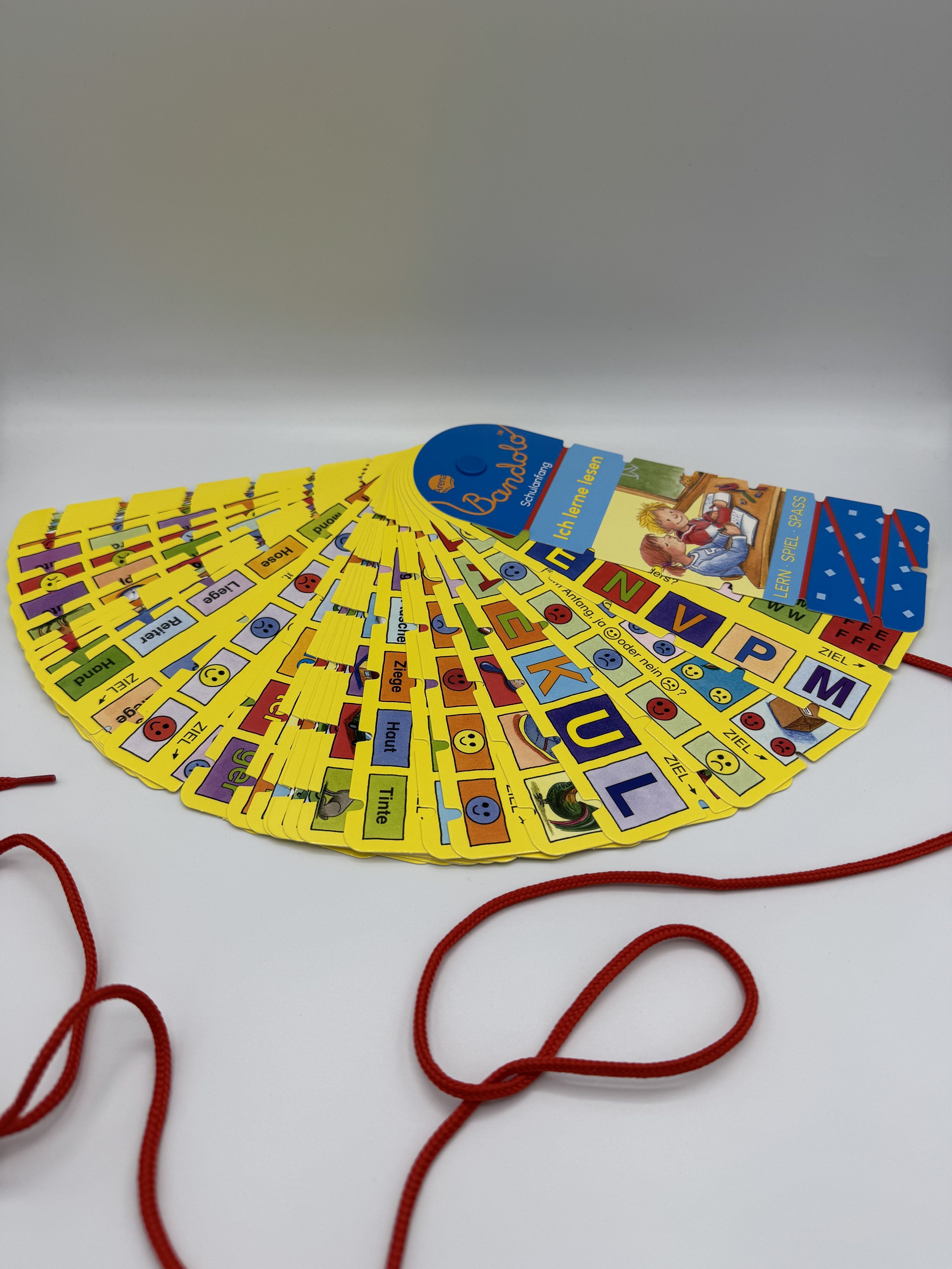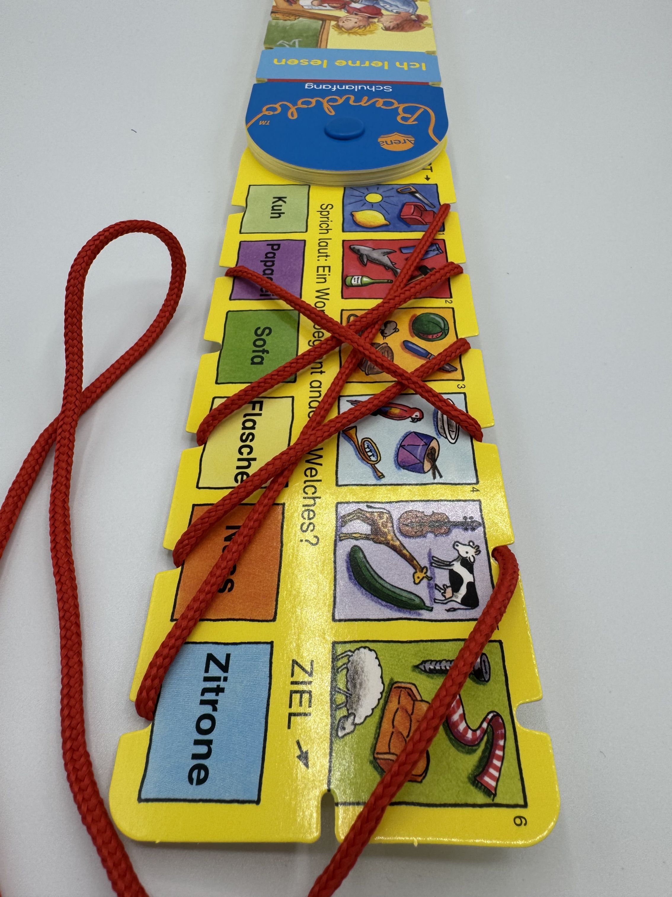 Motiviert lernen mit Lösungskontrolle ! In dem stabilen Lernspielfächer Bandolo erwarten Kinder zum Schulanfang viele abwechslungsreiche Aufgaben . Einfach die richtigen Bildpaare mit der Schnur verbinden und auf der Kartenrückseite die Lösung kontrollieren ....