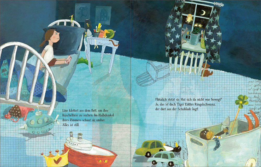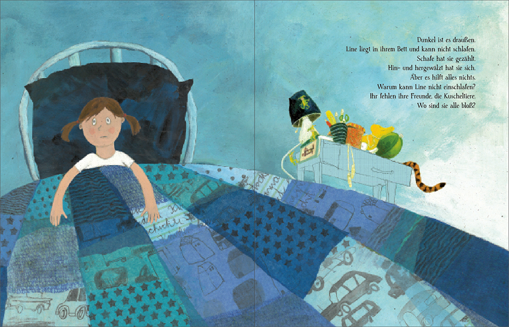Wenn Line nachts nicht schlafen kann, braucht sie ihre Kuscheltiere. Aber die sind im ganzen Zimmer verstreut. Also muss Line raus aus dem Bett und die Kuscheltiere einsammeln. Mit jedem eingesammelten Tier erlebt sie ein Abenteuer in einem anderen fernen Land...