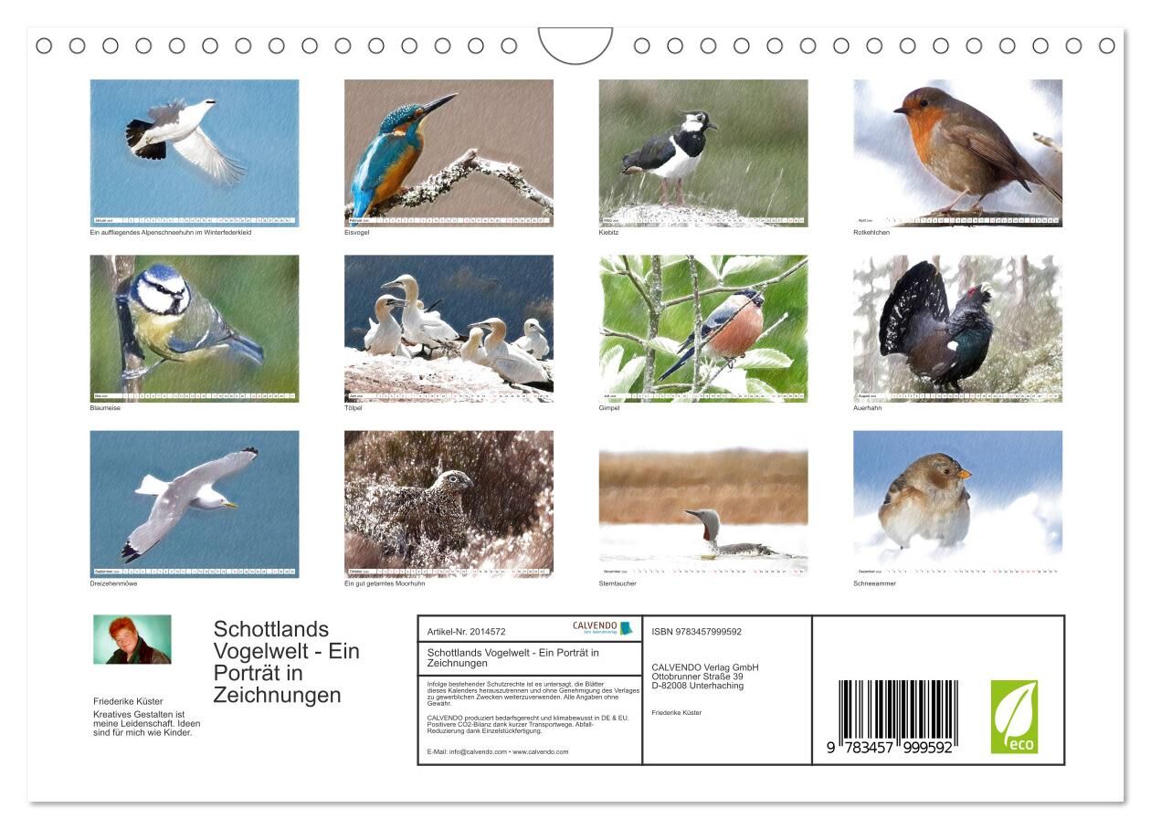 Schottlands Vogelwelt - Ein Porträt in Zeichnungen (Wandkalender 2026 DIN A4 quer), CALVENDO Monatskalender