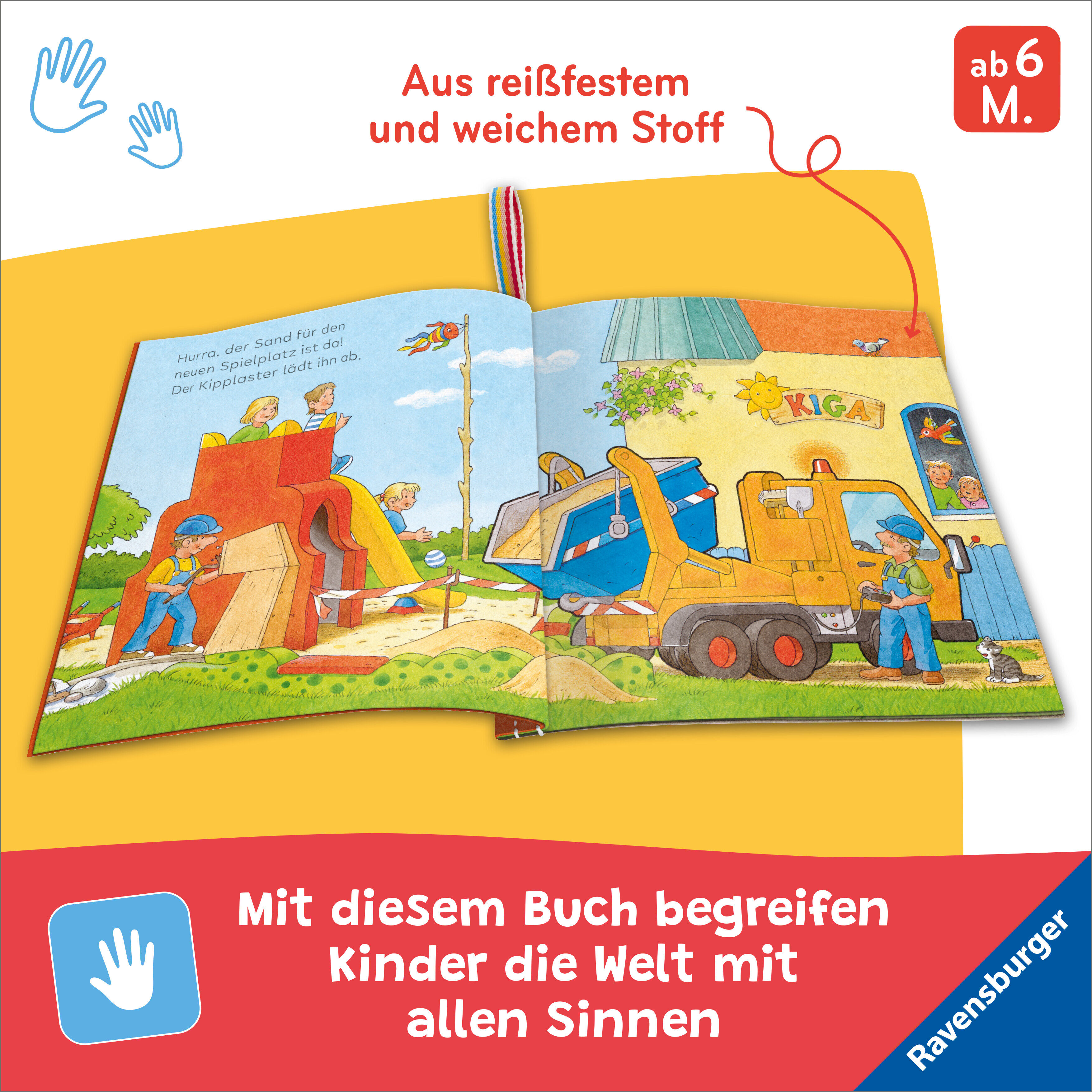 Stoffbuch zum Kuscheln, Knabbern und Baden Entdecke spannende große Fahrzeuge in diesem Buch: von Bagger und Müllauto bis hin zu Kipplaster und einem Containerschiff. Ein kuschelstarkes Buch für jede Gelegenheit! Dieses federleichte Stoffbuch für Kinder ab 6 M...