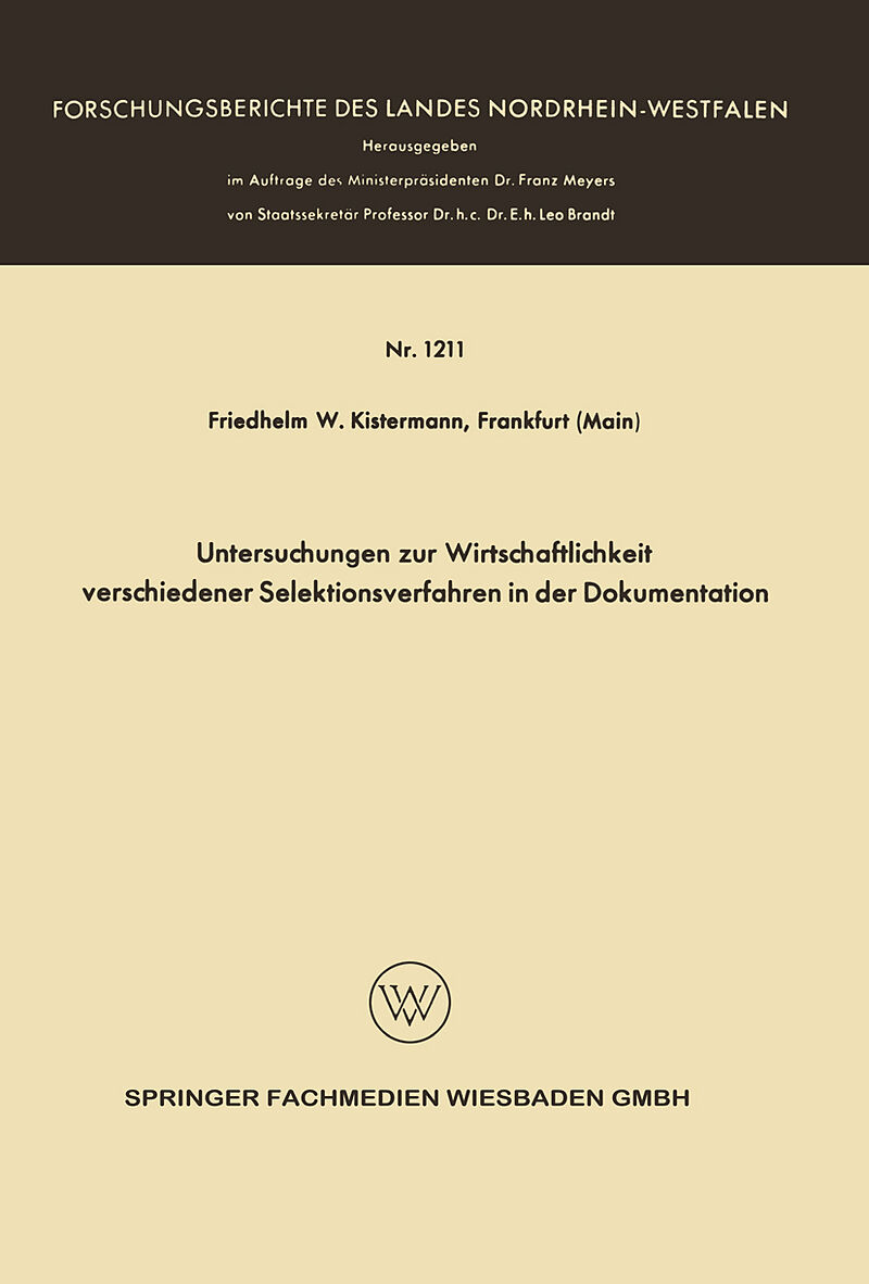 Vom Minister für Wirtschaft und Verkehr des Landes Nordrhein-Westfalen wurden dem Forschungsinstitut für Rationalisierung an der Rheinisch-West fälischen Technischen Hochschule Aachen für eine " Untersuchung zur Wirtschaftlichkeit verschiedener Selektions...