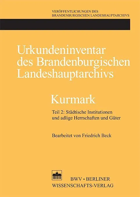 Die seit 1958 erscheinende Schriftenreihe "Veröffentlichungen des Brandenburgischen Landeshauptarchivs" beinhaltet in ihren umfangreichen Bänden Hilfsmittel, Nachschlagewerke, Quelleneditionen und Darstellungen. Die Bände erschienen bis 1998 im Verlag Hermann ...