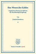 Friedrich Bendixen verfasste mehrere grundlegende Werke zur Geld- und Kredittheorie. Seine Schrift »Das Wesen des Geldes« erschien erstmals 1908 und gliedert sich in drei Teile. Im ersten Teil behandelt Bendixen die herkömmliche Vorstellung vom Geld und dessen...