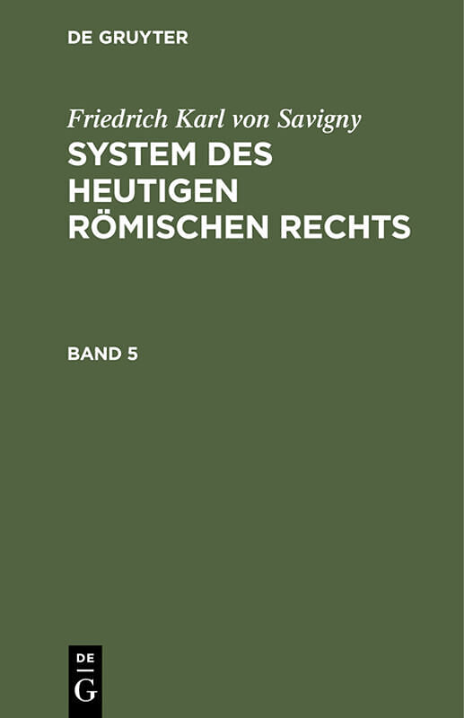 Keine ausführliche Beschreibung für "SAVIGNY:SYSTEM DES HEUTIGEN RÖMISCHEN RECHTS BD 5" verfügbar. Frontmatter -- Inhalt des fünften Bandes -- Zweytes Buch. Die Rechtsverhältnisse -- Viertes Kapitel. Verletzung der Rechte -- §. 204. Einleitung -- §. ...