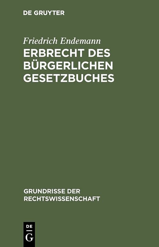 Keine ausführliche Beschreibung für "Erbrecht des Bürgerlichen Gesetzbuches" verfügbar. Frontmatter -- Vorwort -- Inhaltsverzeichnis -- Kapitel I. Dir allgemeinen Grundlagen der Erbfolge -- Kapitel II. Gesetzliche Erbfolge -- Kapitel III. Verfügungen...
