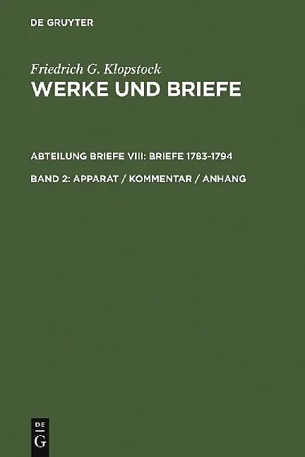 Keine ausführliche Beschreibung für "Apparat / Kommentar / Anhang" verfügbar. Friedrich Gottlieb Klopstock (1724-1803) is one of the most important figures in the history of German literature. He is seen as paving the way for the age of sentimentalis...