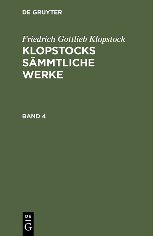 Keine ausführliche Beschreibung für "KLOPSTOCKS SÄMMTLICHE WERKE BD. 4 KLOPSW" verfügbar. Frontmatter -- Verzeichniß der Oden -- An Bernstorff. Im Jahr 1747 -- Der Lehrling der Griechen -- Wingolf -- An Giseke -- 1748 -- Die künftige Geliebte -- An E...