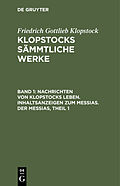 Keine ausführliche Beschreibung für "Nachrichten von Klopstocks Leben. Inhaltsanzeigen zum Messias. Der Messias, Theil 1" verfügbar. Frontmatter -- Inhalt -- Nachrichten von Klopstocks Leben -- Inhaltsanzeigen zum Messias -- Der Messias -- Erster Ges...