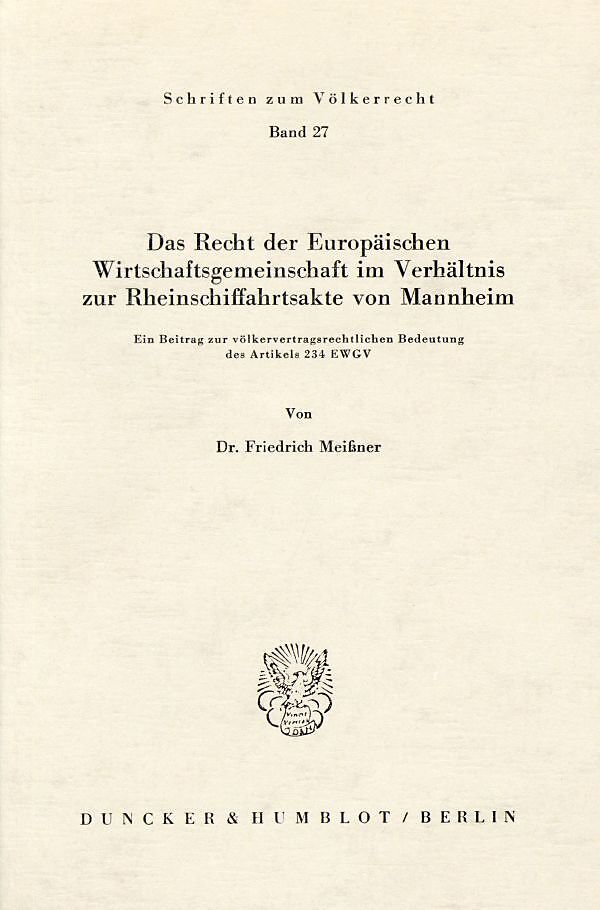 Das Recht der Europäischen Wirtschaftsgemeinschaft im Verhältnis zur Rheinschiffahrtsakte von Mannheim.