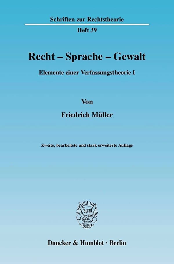 Inhaltsübersicht: 1. Fragestellungen: 1.1 Die herrschende Auffassung - 1.2 Offene Fragen - 1.3 Voraussetzungen - 1.4 Änderung der Ausgangsfrage - 1.5 Rechtsarbeit - 2. Recht - Sprache - Gewalt: 2.1 Tatsächliche Abläufe - 2.2 Zwischenergebnisse - 2.3 Verfassungspolitische Bewertung - 3. Gesichtspunkte zur Wissenschaftstheorie: 3.1 "Sprachspiel" - 3.2 Kommunikationssituation - 3.3 "Aktualität", Lebensbezug, Vorverständnis - 3.4 Normativität, Normstruktur: 3.41 Normprogramm, Normbereich - 3.42 Axiomatisierung - 3.43 Funktionale Arbeitsteilung - 3.44 Normrevision - 3.5 Folgerung - 4. Formen und Umformungen von Gewalt: 4.1 Begriffliches - 4.2 Ausweitung der Kampfzone - 4.3 "Gewalt" in der Rechtsprechung - 4.4 Organisation der Gewalt - 4.5 Faltung der Gewalt - Die (legitime) Gewalt des Richters - 4.6 Textstruktur - Gewaltenteilung durch Textteilung - Gewalt der Sprache