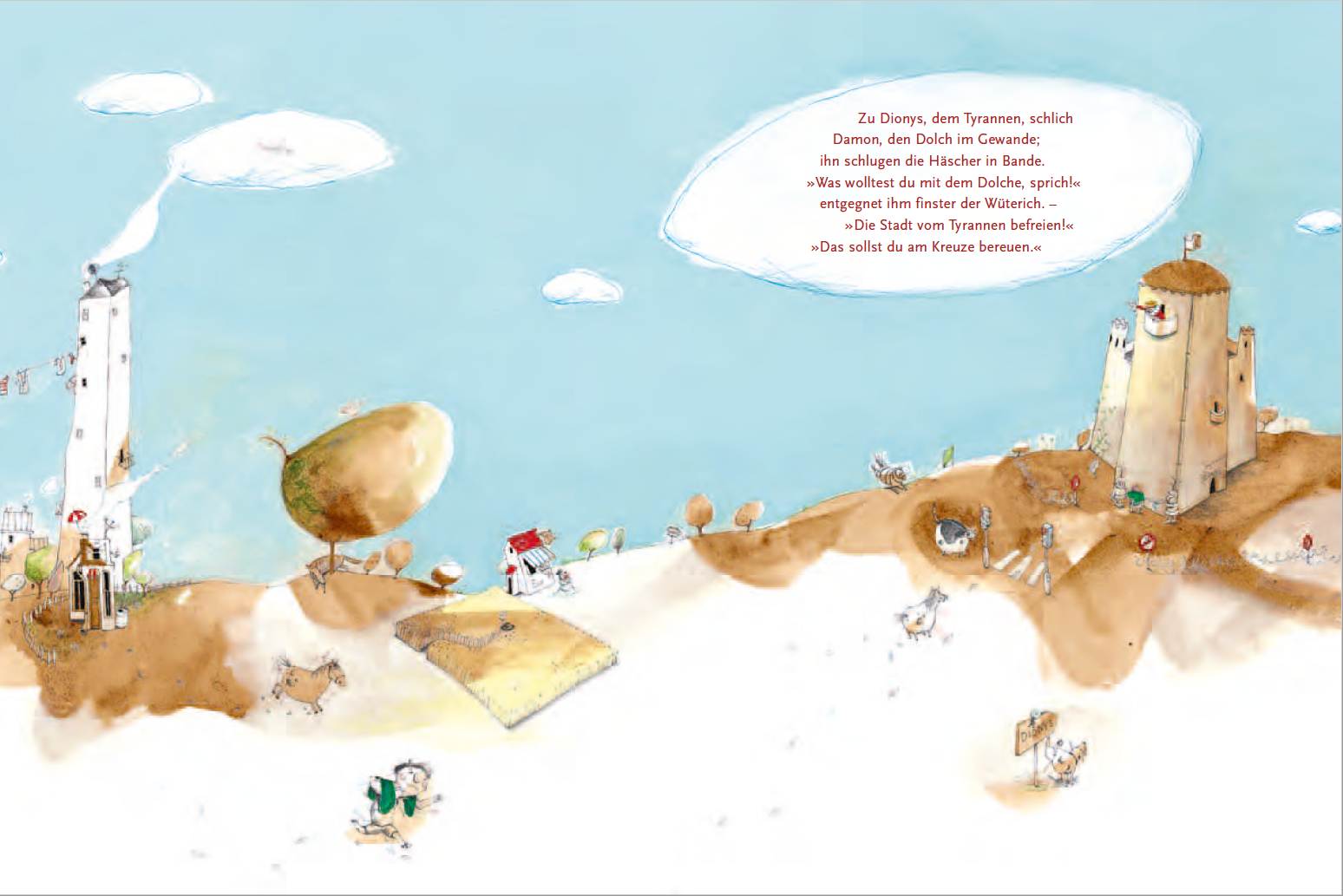 Wer kennt sie nicht, Friedrich Schillers berühmte Ballade Die Bürgschaft, die von unerschütterlichem Vertrauen und treu ergebener Freundschaft zeugt! Jenny Brosinski gelingt es mit fantasievollen und witzigen Bildern, das packende Geschehen um Damon auf kindge...