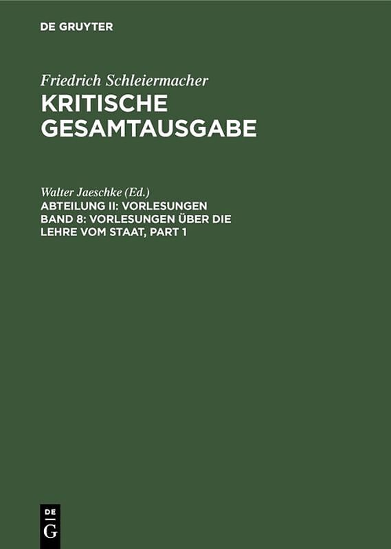 Autorentext Walter Jaeschke, Professor für Philosophie an der Ruhr-Universität Bochum und Direktor des dortigen Hegel-Archivs, Bochum. Klappentext Friedrich Daniel Ernst Schleiermacher (1768-1834) entfaltete in Berlin als Gemeindeprediger, Universitätsprofesso...