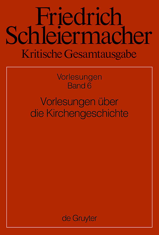 Friedrich Daniel Ernst Schleiermacher (1768 - 1834) was, in Berlin, an eminent preacher, professor, and member of the academy. He displayed an influential theological and philosophical position between enlightenment, German idealism, and romanticism. The hist...