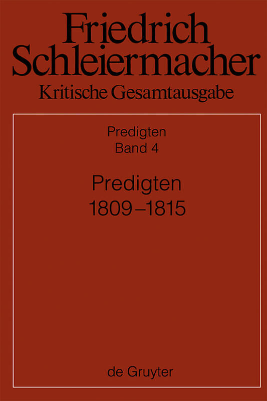 Friedrich Daniel Ernst Schleiermacher (17681834) had a remarkable ability to inspire his contemporaries from the pulpit. This volume is an edition of 107 sermons delivered on 100 occasions in the years 18091815. 74 of them are published for the first time and...