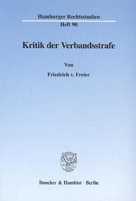 Die Erfahrung verbandsbezogenen Unrechts läßt die Forderung nach Strafen gegen Verbände und insbesondere Unternehmen laut werden - und zwar über die bestehende Geldbußenregelungen des Ordnungswidrigkeitenrechts und des europäischen Rechts hinaus. Der Verfasser...