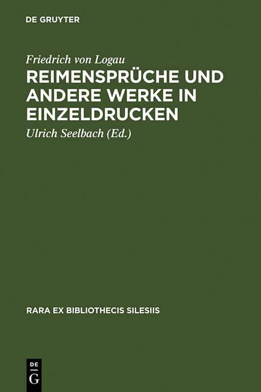 I-VIII -- Texte -- 1. Leichgedicht auf Professor Johann Caspar Odontius (1626) -- 2. Freudengesang (1635) -- 3. Erstes und Andres Hundert Teutscher Reimen-Sprüche (1638) -- 4. Epicedion und Epitaph auf Anna Helena Freiin von Bibran (1642) -- 5. Gott, der du bi...