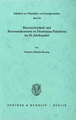 Bauernwirtschaft und Bauerneinkommen im Fürstentum Paderborn im 18. Jahrhundert.