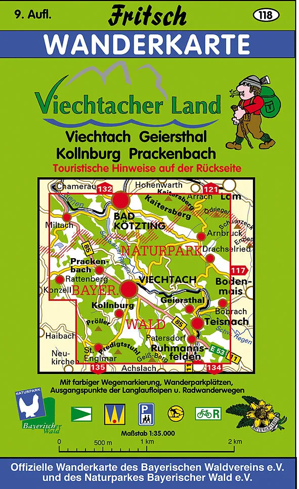 Die Karte umfasst das Gebiet von Bad Kötzting mit Kaitersberg im Norden bis St. Englmar, Ruhmannsfelden im Süden der Karte und von Bodenmais im Osten bis Miltach, Rattenberg im Westen.
