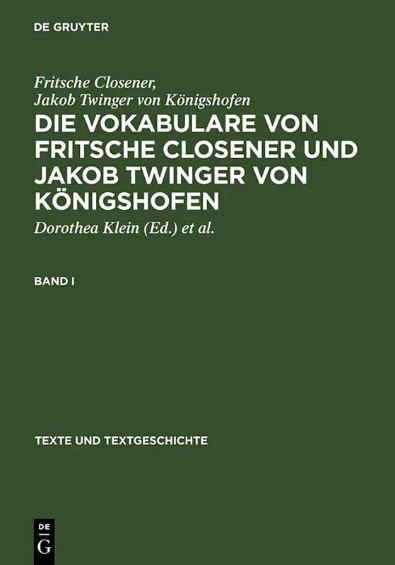 Keine ausführliche Beschreibung für "Die Vokabulare von Fritsche Closener und Jakob Twinger von Königshofen" verfügbar. Autorentext Dorothea Klein, geboren 1954, ist Professorin für Ältere deutsche Literatur an der Universität Kiel. Klappentext Die R...
