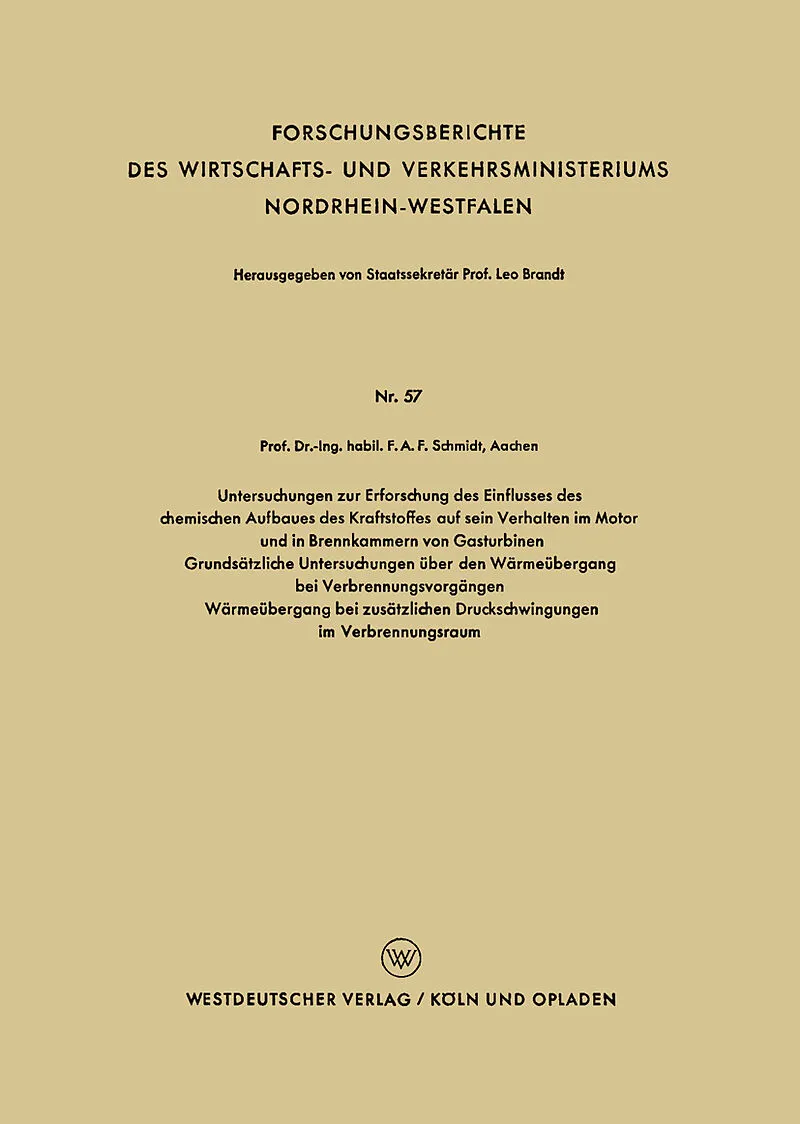 Untersuchungen zur Erforschung des Einflusses des chemischen Aufbaues des Kraftstoffes auf sein Verhalten im Motor und in Brennkammern von Gasturbinen.- Grundsätzliche Untersuchungen über den Wärmeübergang bei Verbrennungsvorgängen.