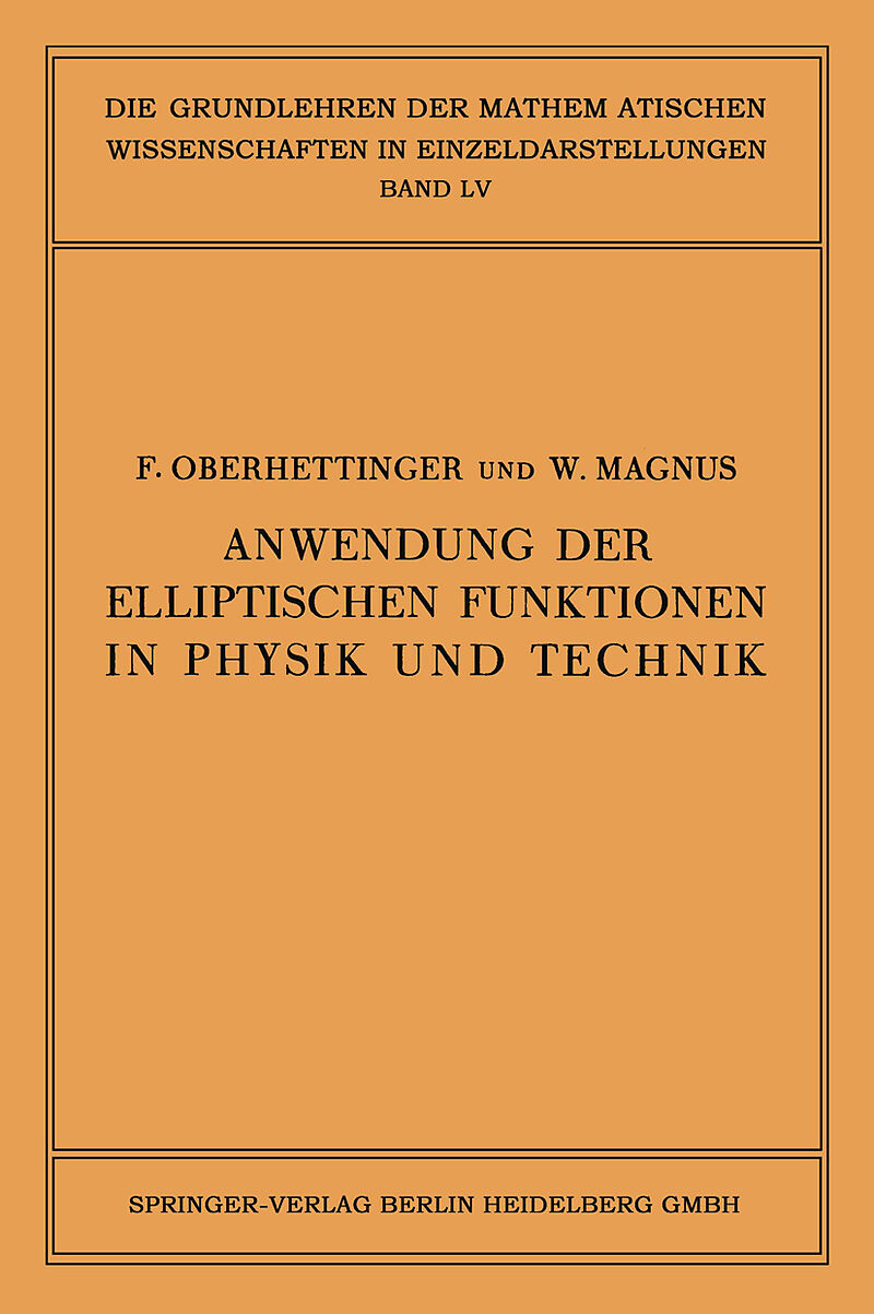 Bei den Anwendungen der elliptischen :Funktionen und Integrale auf die Behandlung physikalischer oder technischer Fragen werden nicht nur die grundlegenden Eigenschaften, sondern auch zahlreiche spezielle Formeln aus der Theorie dieser Funktionen gebraucht. Wi...