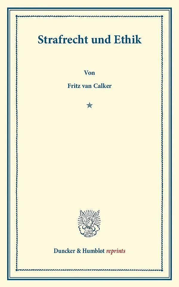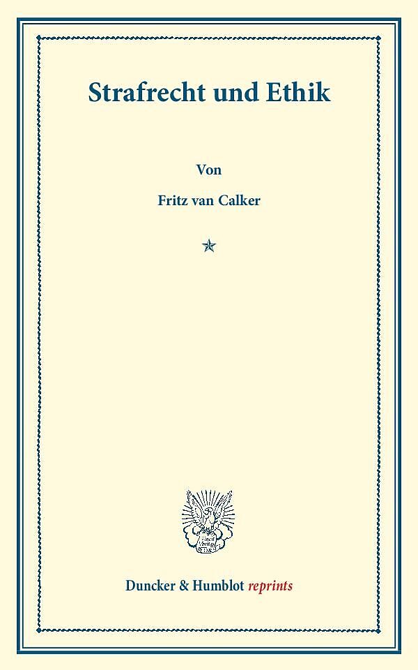 »Strafrecht und Ethik« ist die Veröffentlichung eines Vortrages, den Fritz van Calker 1887 vor der Generalversammlung des Vereins zur Fürsorge entlassener Gefangener des Bezirkes Unter-Elsass hielt. Für Calker, der sich zeitlebens mit strafrechtlichen Grundsat...